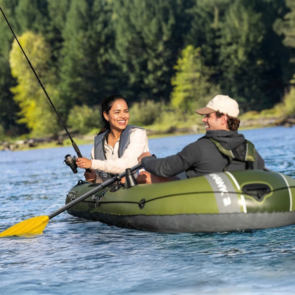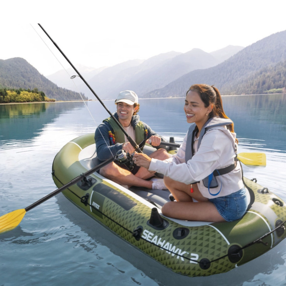 Dmuchana łódź INTEX Seahawk 2 to niezawodny towarzysz odpoczynku i aktywności nad wodą. Konstrukcja z dmuchaną podłogą i-Beam zapewnia wygodę i stabilność, obwodowa lina bezpieczeństwa ułatwia przenoszenie i manewrowanie. Obrotowe uchwyty na wiosła, praktyczna boczna kieszeń oraz zintegrowane uchwyty podnoszą komfort podczas każdej wyprawy.