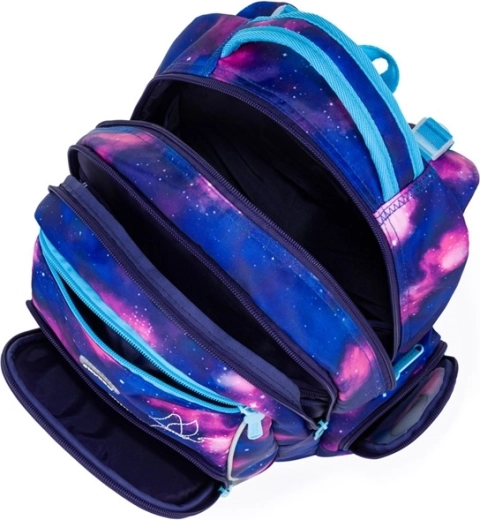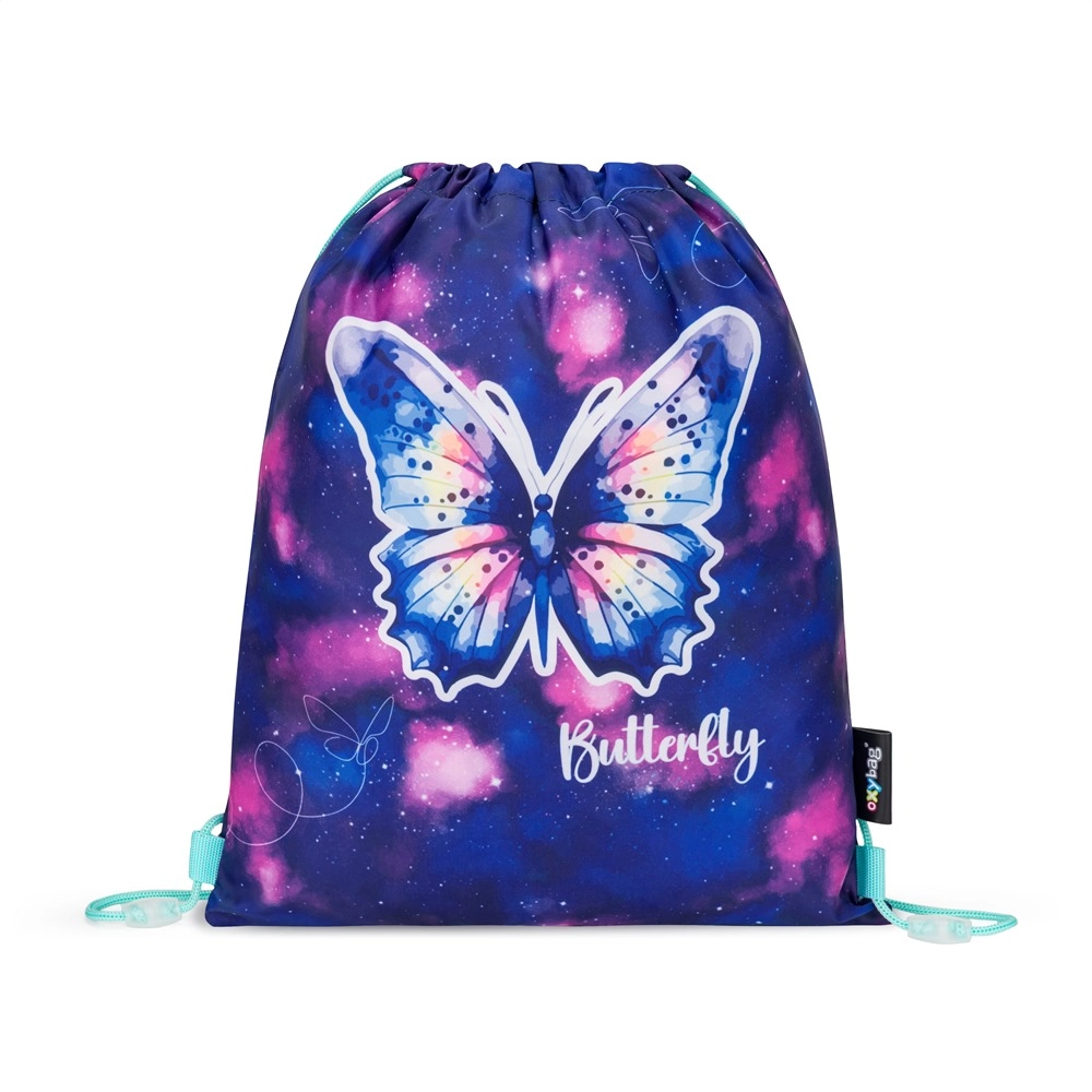 Zestaw Oxy Go Motyl w galaktycznym wzorze z motylem zachwyca wyglądem i funkcjonalnością. Plecak zapewnia wygodę dzięki ergonomicznym, wyściełanym plecom oraz regulowanym szelkom z haczykami do mocowania dłuższych końcówek. Wiele komór i kieszeni gwarantuje przejrzyste rozmieszczenie podręczników, zeszytów i drobiazgów, a kieszenie boczne pomieszczą także butelkę z napojem.