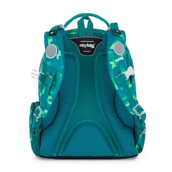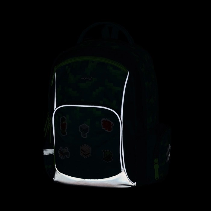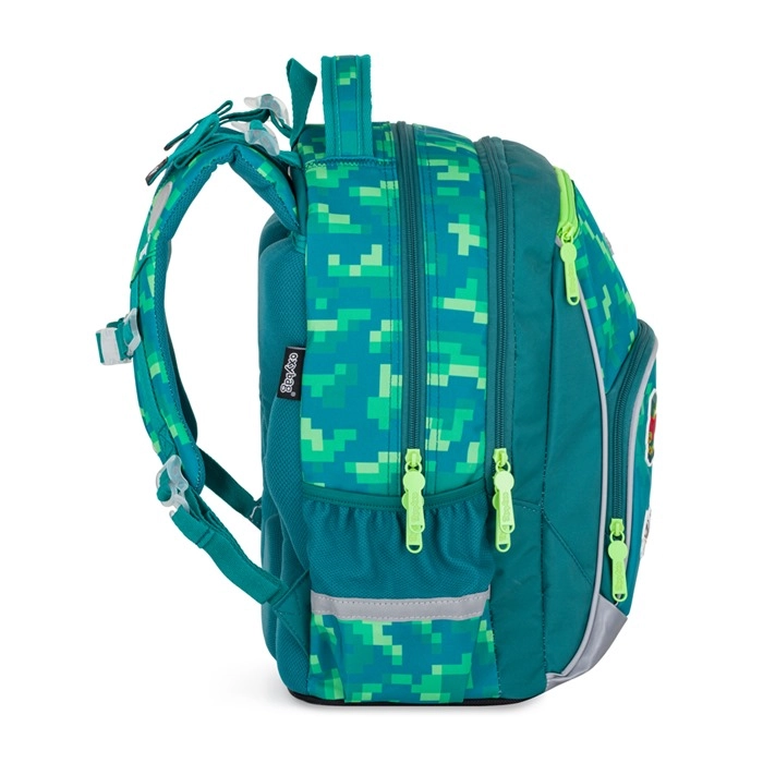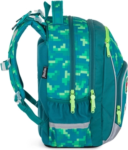 Szkolny plecak Oxy Go Playworld w nowoczesnym, pikselowym wzorze to świetny wybór dla młodszych uczniów od wzrostu 125 cm. Oferuje dwie główne komory do przejrzystego przechowywania podręczników i zeszytów, boczne kieszenie na butelkę i drobiazgi oraz wiele mniejszych kieszeni dla perfekcyjnej organizacji. Ergonomicznie ukształtowane plecy z wyściółką i regulowanymi szelkami zapewniają wygodę przez cały szkolny dzień.