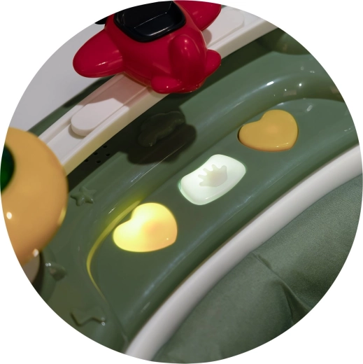 - Interaktywny panel ze światłami, muzyką i zabawkami dla rozwoju umiejętności