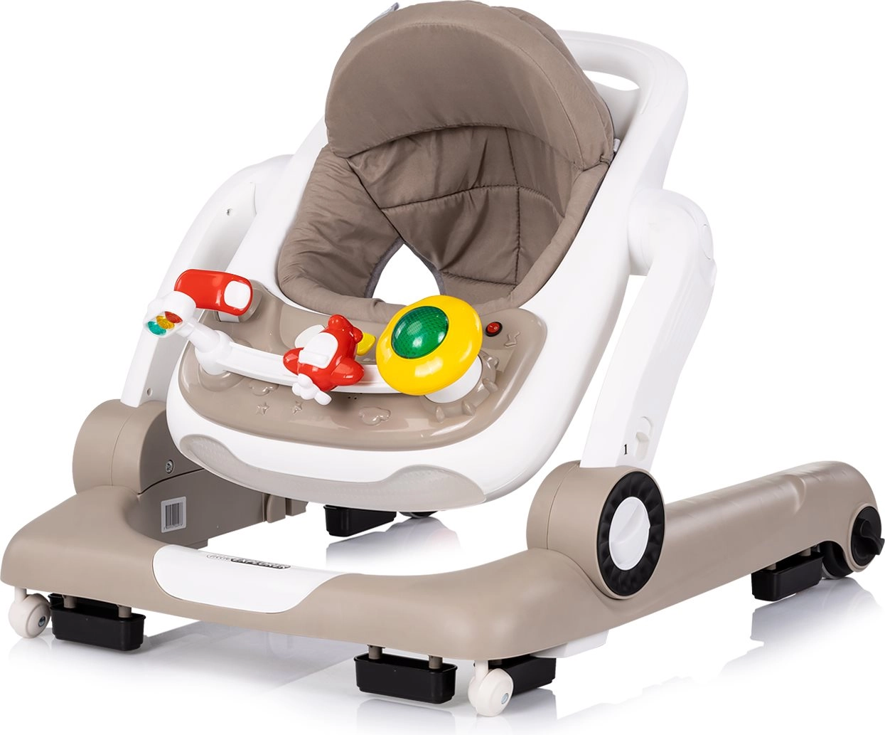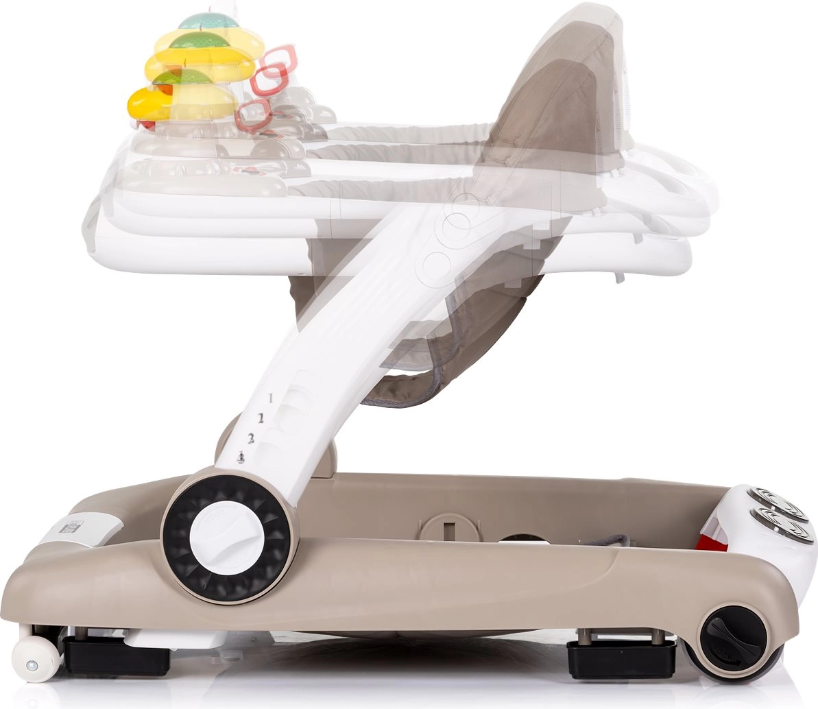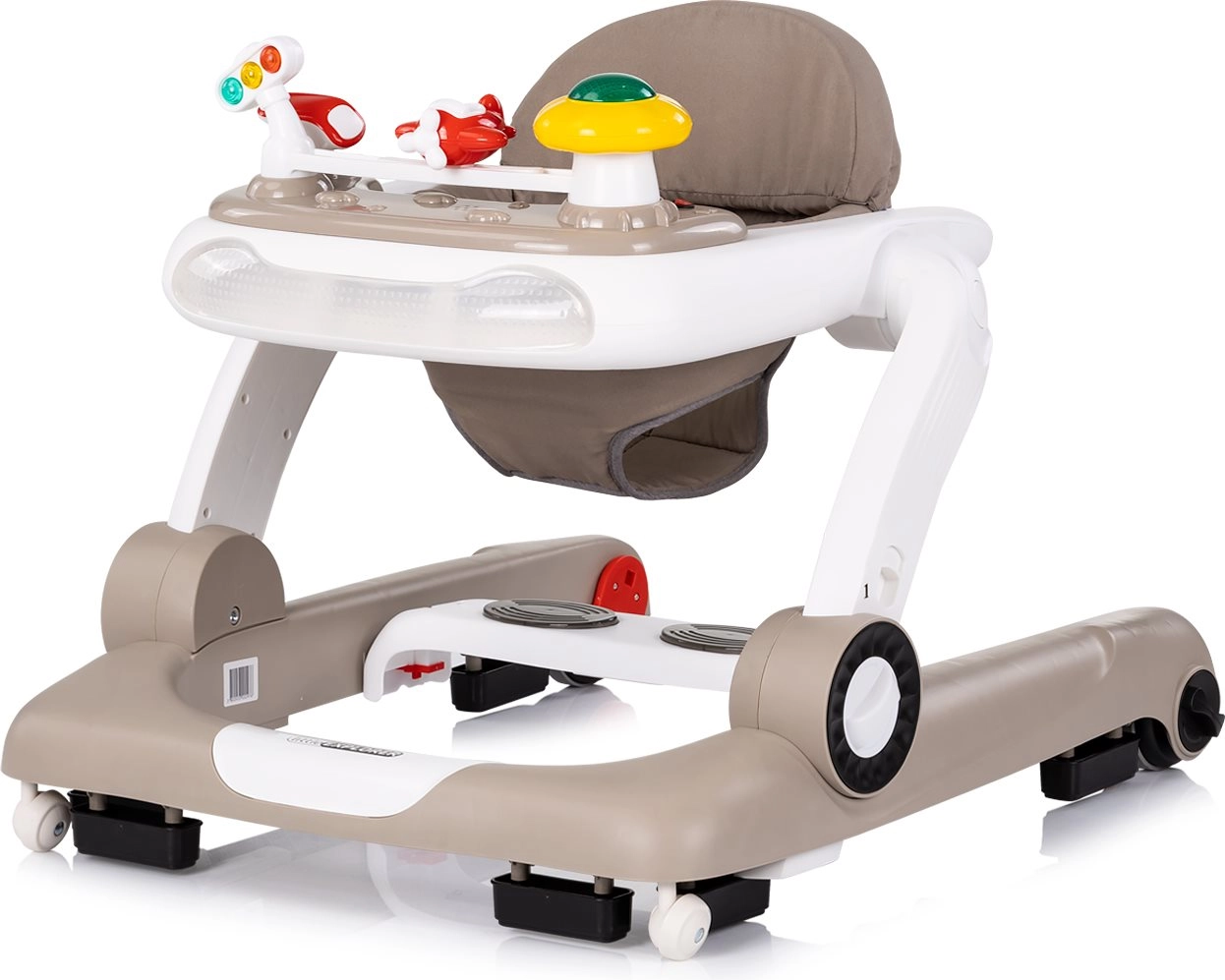 - 4 tryby użytkowania: chodzik, centrum zabaw, tryb skakania, pchacz/jeździk