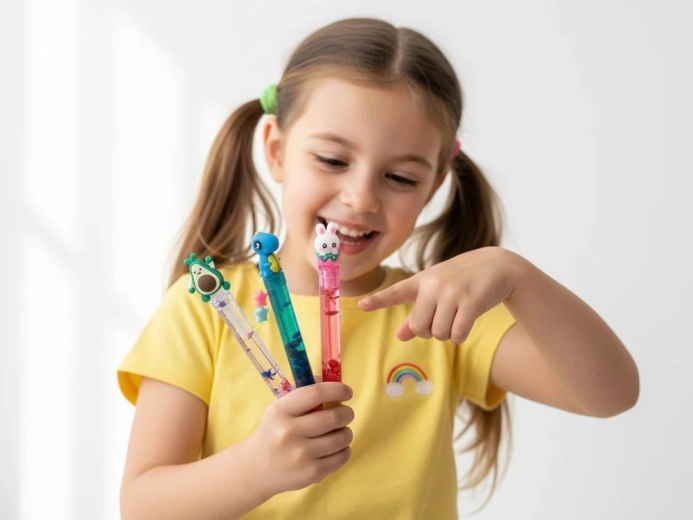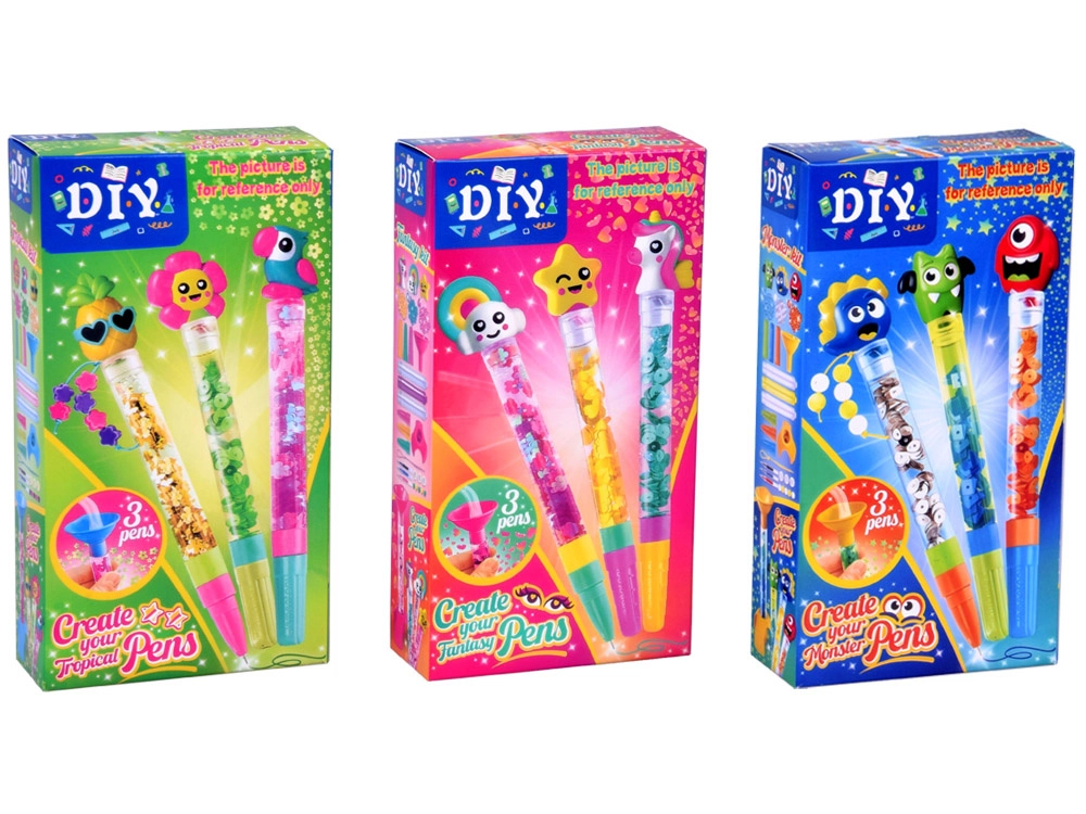 Stwórz własne błyszczące żelowe długopisy z pływającymi konfetti i uroczymi topperami. Zestaw zawiera wszystko do 3 niepowtarzalnych długopisów – przezroczyste korpusy, kolorowe wkłady, brokat, koraliki i gumowe figurki. Świetny wybór dla kreatywnej twórczości dzieci, rozwoju motoryki małej i zabawy do szkoły oraz na przyjęcia.