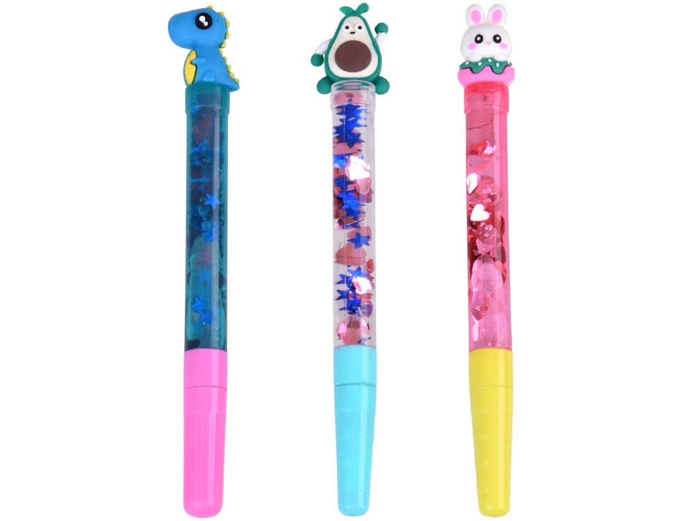 Opakowanie wystarcza na trzy kompletne żelowe długopisy z przezroczystym korpusem, brokatem i kolorowymi wkładami – każdy będzie oryginalny.