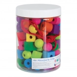 Kolorowe drewniane duże korale są idealną pomocą dla dzieci od 3 lat, które chcą ćwiczyć swoją zręczność i jednocześnie się bawić. Zestaw zawiera 92 elementy w różnych kształtach i kolorach, które można nawlekać na dołączony solidny sznurek.