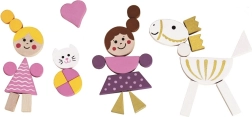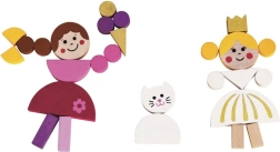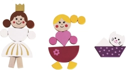 Kolorowe drewniane elementy z magnesem łatwo ułożycie w postacie, zwierzątka i zamki. Dzieci stworzą własne bajki i scenki dokładnie według wyobraźni.