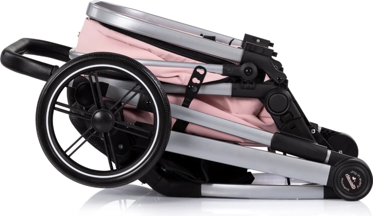 Dla maksymalnego komfortu jazdy wózek ma amortyzację przednich i tylnych kół, obrotowe przednie koła z blokadą oraz system szybkiego wypinania do łatwego demontażu kół i kompaktowego złożenia. Regulowana wysokość rączki z detalami z eko‑skóry PU dobrze leży w dłoni i wygląda elegancko. 5‑punktowe pasy bezpieczeństwa z miękkimi nakładkami oraz odpinany przedni pałąk zapewniają bezpieczeństwo i wygodne wsiadanie dziecka.