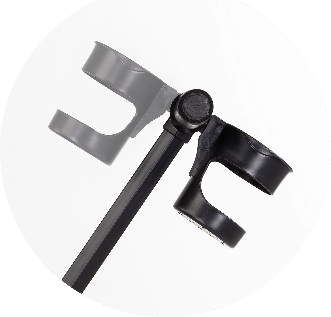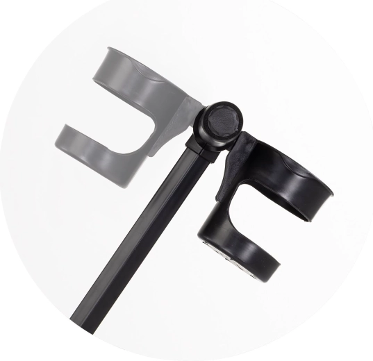 Składany daszek chroni przed słońcem, koszyki z przodu i z tyłu pomieszczą drobiazgi, a uchwyt na napój jest zawsze pod ręką.