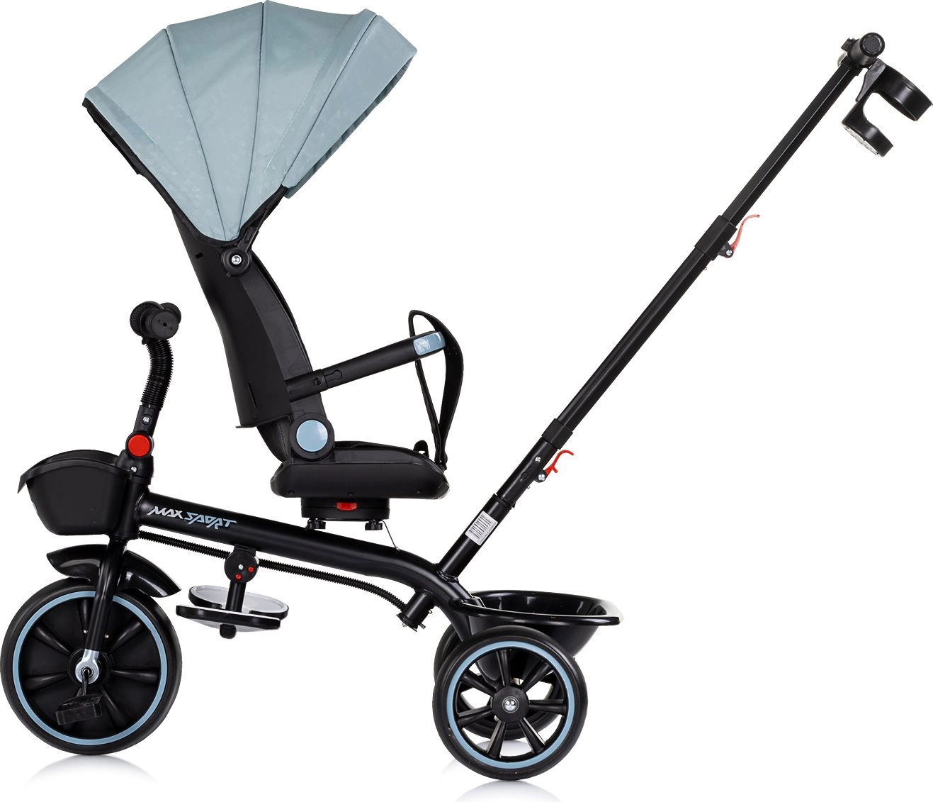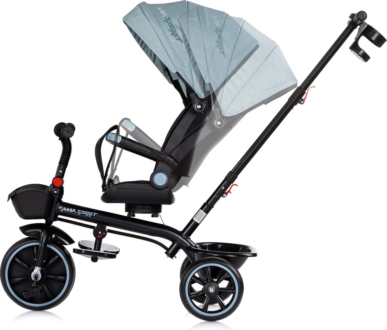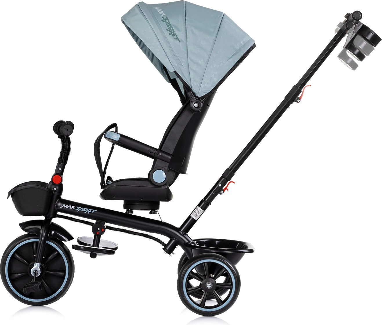 Odkryj wszechstronny dziecięcy trójkołowiec 2w1 CHIPOLINO Max Sport w kolorze Matcha, który rośnie razem z Twoim dzieckiem. Oferuje tryb z prowadzeniem przez rodzica oraz samodzielną jazdę, ma obrotowe i regulowane siedzisko, składany daszek z osłoną przeciwsłoneczną, pas bezpieczeństwa i pałąk ochronny, regulowaną rączkę dla rodzica oraz praktyczne koszyki z przodu i z tyłu na wygodne wycieczki.