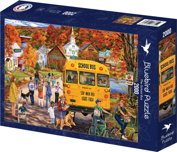 Wielkoformatowe puzzle BLUEBIRD z motywem klasycznego szkolnego autobusu ucieszą każdego, kto kocha spokojne układanie i wysoką jakość wykonania. Po ułożeniu otrzymasz efektowny obraz o wymiarach ok. 98 × 69 cm, idealny do wyeksponowania.