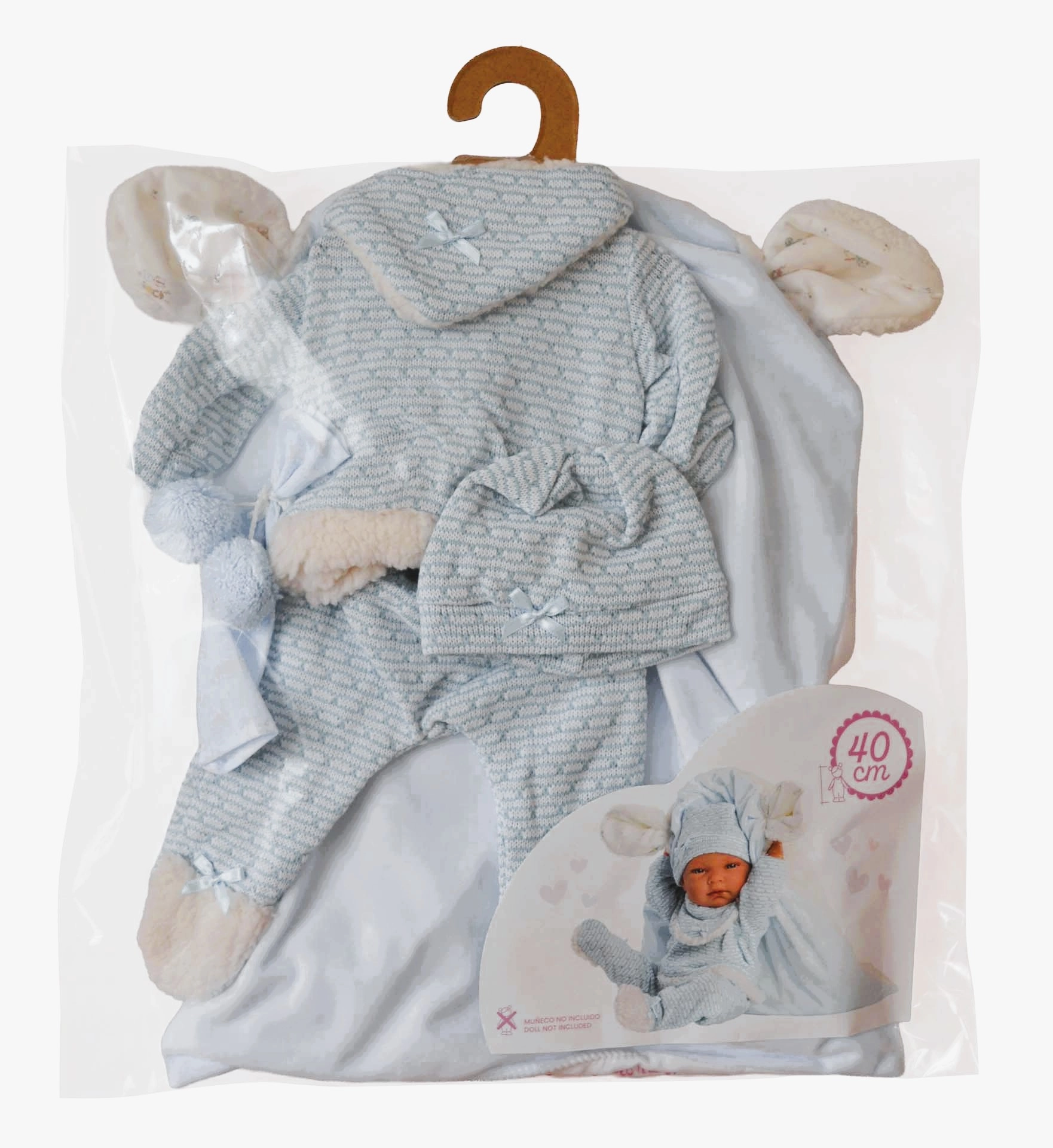 Ten starannie skomponowany zestaw ubranek dla lalek NEW BORN w rozmiarze 40–42 cm obejmuje 4 miękkie elementy garderoby oraz urocze akcesoria, które pobudzą wyobraźnię podczas zabawy w opiekę nad niemowlakiem. Dzięki ręcznemu wykonaniu w Hiszpanii możesz liczyć na premium materiały, delikatne szwy i komfortowe kroje.