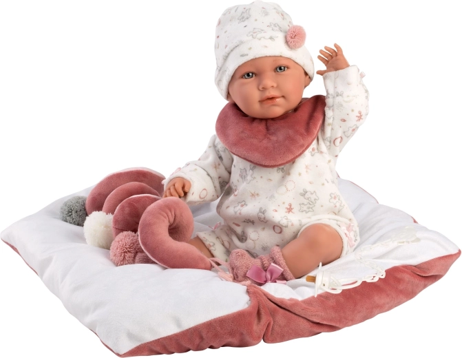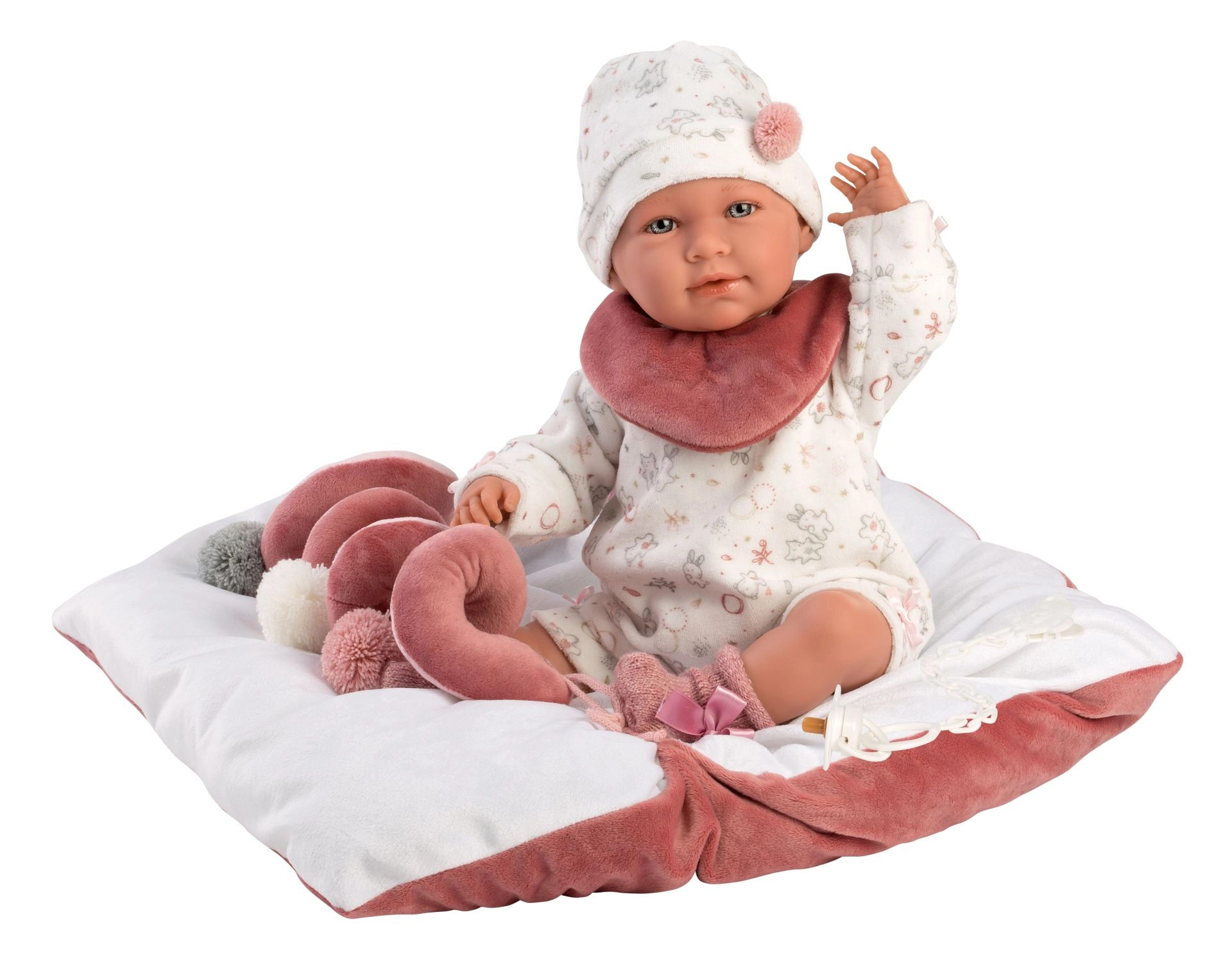 Zestaw obejmuje dopasowane ubranko, aksamitny śliniaczek i mięciutką matę, dzięki czemu Twoja lalka ma wszystko do codziennej pielęgnacji i wygodnego ułożenia.