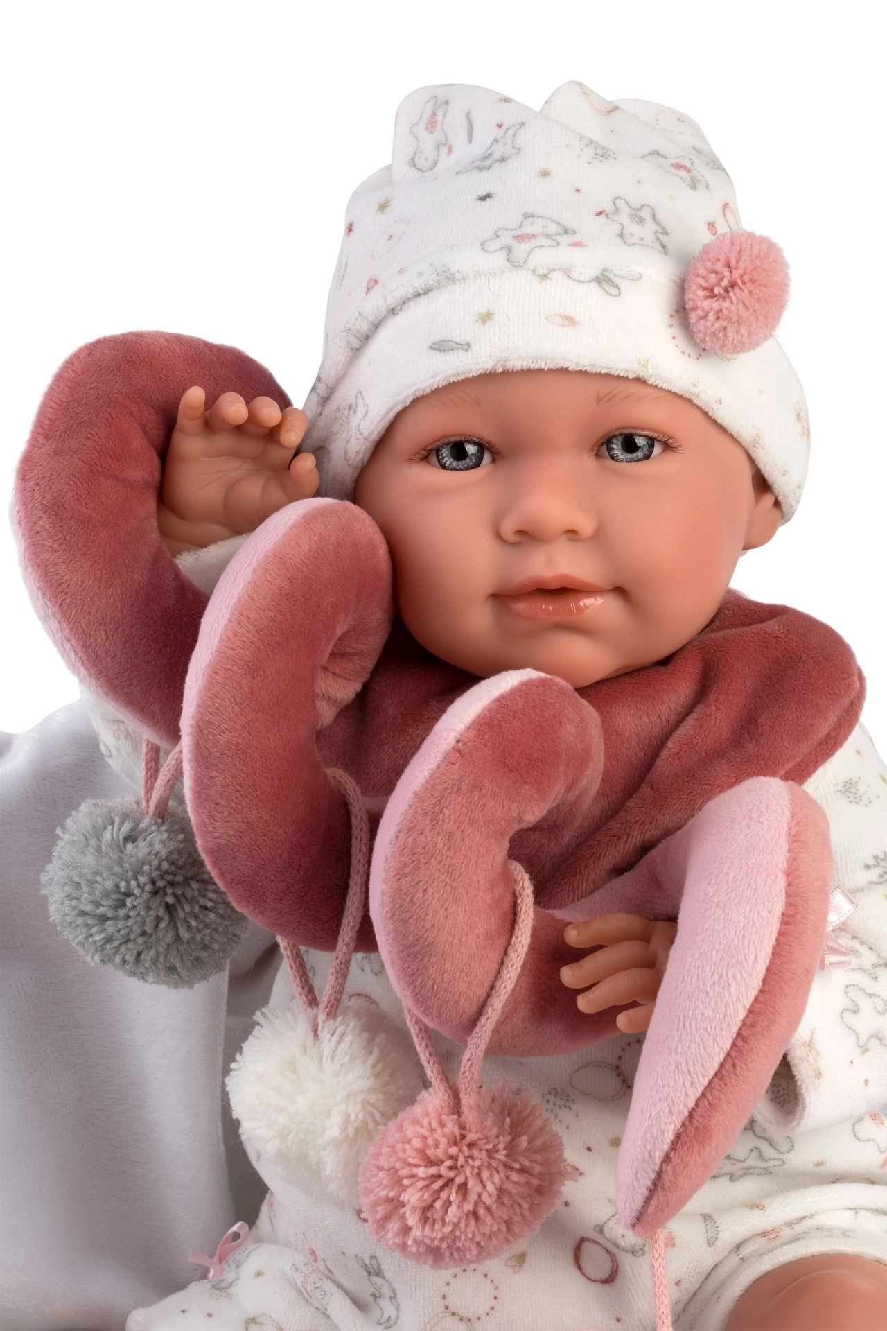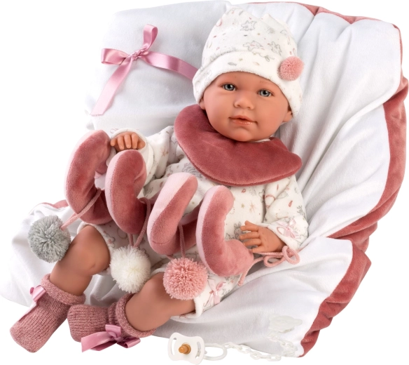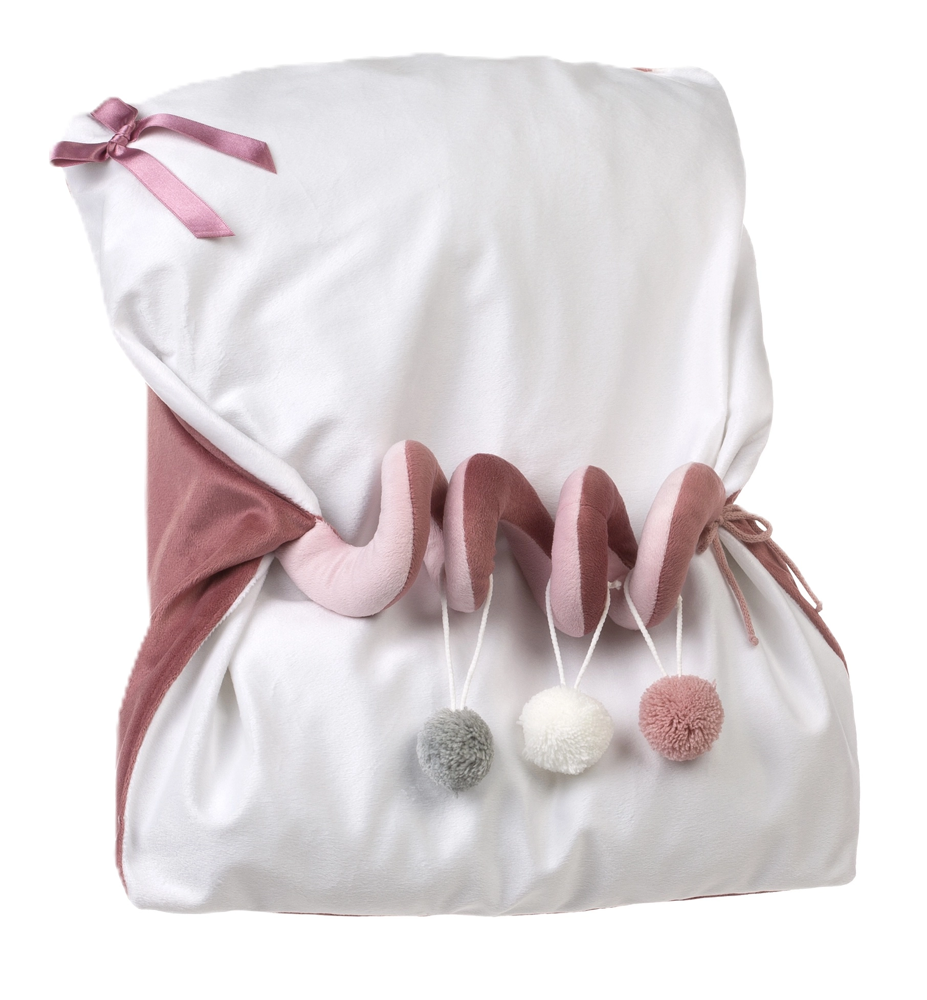 - Bogate akcesoria: 2 części ubranka, aksamitny śliniaczek, miękka mata ze spiralną zabawką