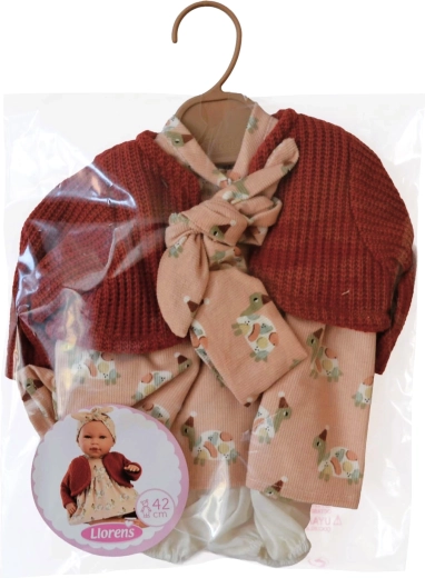 Stylowe, 4‑częściowe ubranko dla lalki New Born marki Llorens w rozmiarze 40–42 cm. Ręcznie wykonane w Hiszpanii z wysokiej jakości materiałów, dostarczane w praktycznym opakowaniu z wieszakiem. Idealne do rozwijania wyobraźni i opiekuńczych umiejętności podczas zabawy. Polecane od 3 lat.