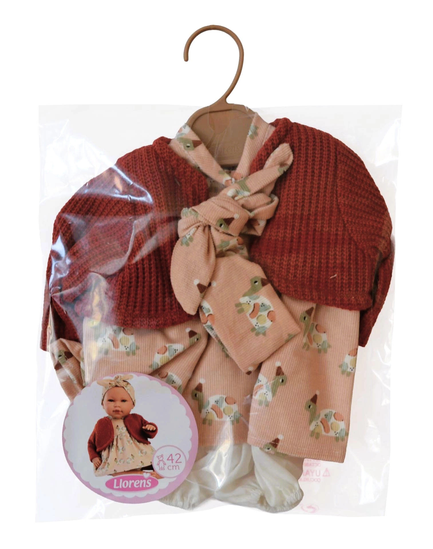 Praktyczne opakowanie z foliowym pokrowcem i wieszakiem ułatwia przechowywanie i przenoszenie. Ubranko wspiera rozwój małej motoryki, wyobraźni oraz umiejętności opiekuńczych dzieci.