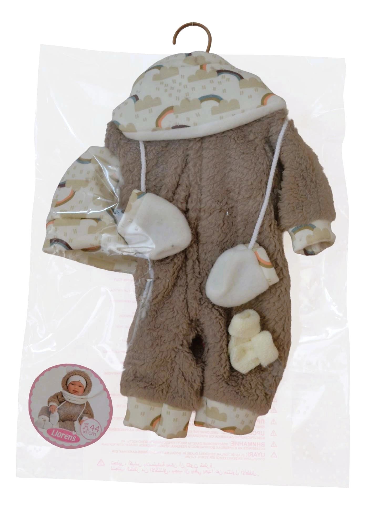 Każdy element jest starannie ręcznie wykonany w Hiszpanii z wysokiej jakości materiałów, przyjemnych w dotyku i dobrze trzymających kształt. Dzięki uniwersalnemu rozmiarowi 43–45 cm ubranka pasują do większości lalek w tej kategorii. Praktyczne opakowanie w foliowej osłonie z wieszakiem ułatwia przenoszenie i przechowywanie.