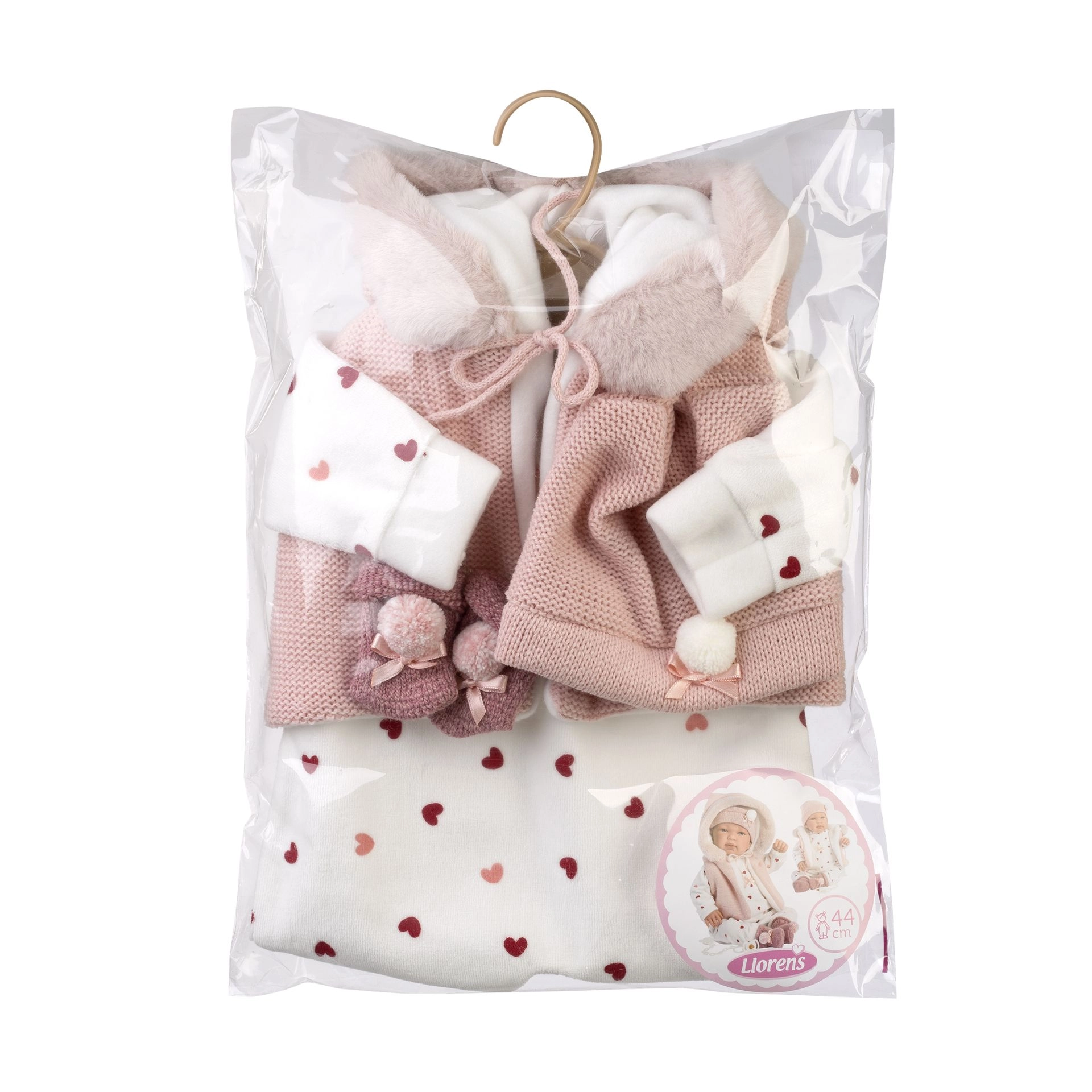 Zestaw przeznaczony jest dla lalek o wielkości 43–45 cm i doskonale pasuje do popularnych modeli Llorens. Dzięki praktycznemu opakowaniu z wieszakiem przechowywanie i organizacja ubranek są proste i przejrzyste.