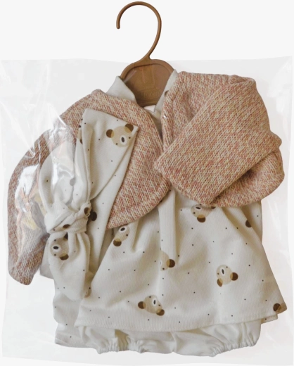 Uzupełnij garderobę swojej lalki stylowym zestawem Llorens dla niemowlęcia NEW BORN w rozmiarze 43–45 cm. Ten 4‑częściowy zestaw jest ręcznie wykonany w Hiszpanii, oferuje wysoką jakość wykonania i jest idealny do kreatywnej zabawy dla dzieci od 3 lat.