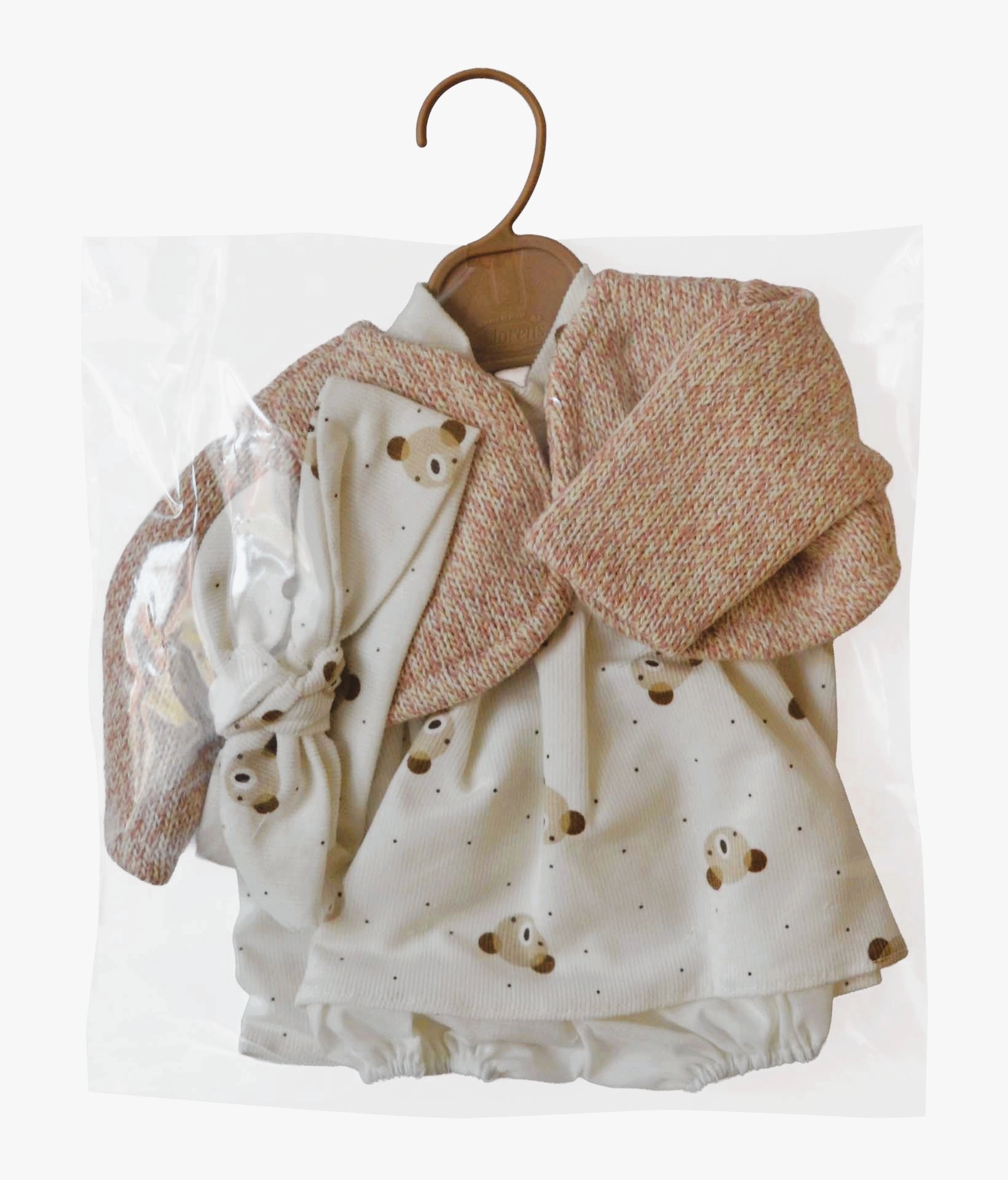 Ożyw świat swojej lalki eleganckim zestawem ubranek Llorens przeznaczonym dla lalek niemowlę NEW BORN w rozmiarze 43–45 cm. Zestaw został starannie wykonany z dbałością o detale i wygodę, aby dzieci mogły łatwo się nim posługiwać, a zabawa była jeszcze przyjemniejsza.