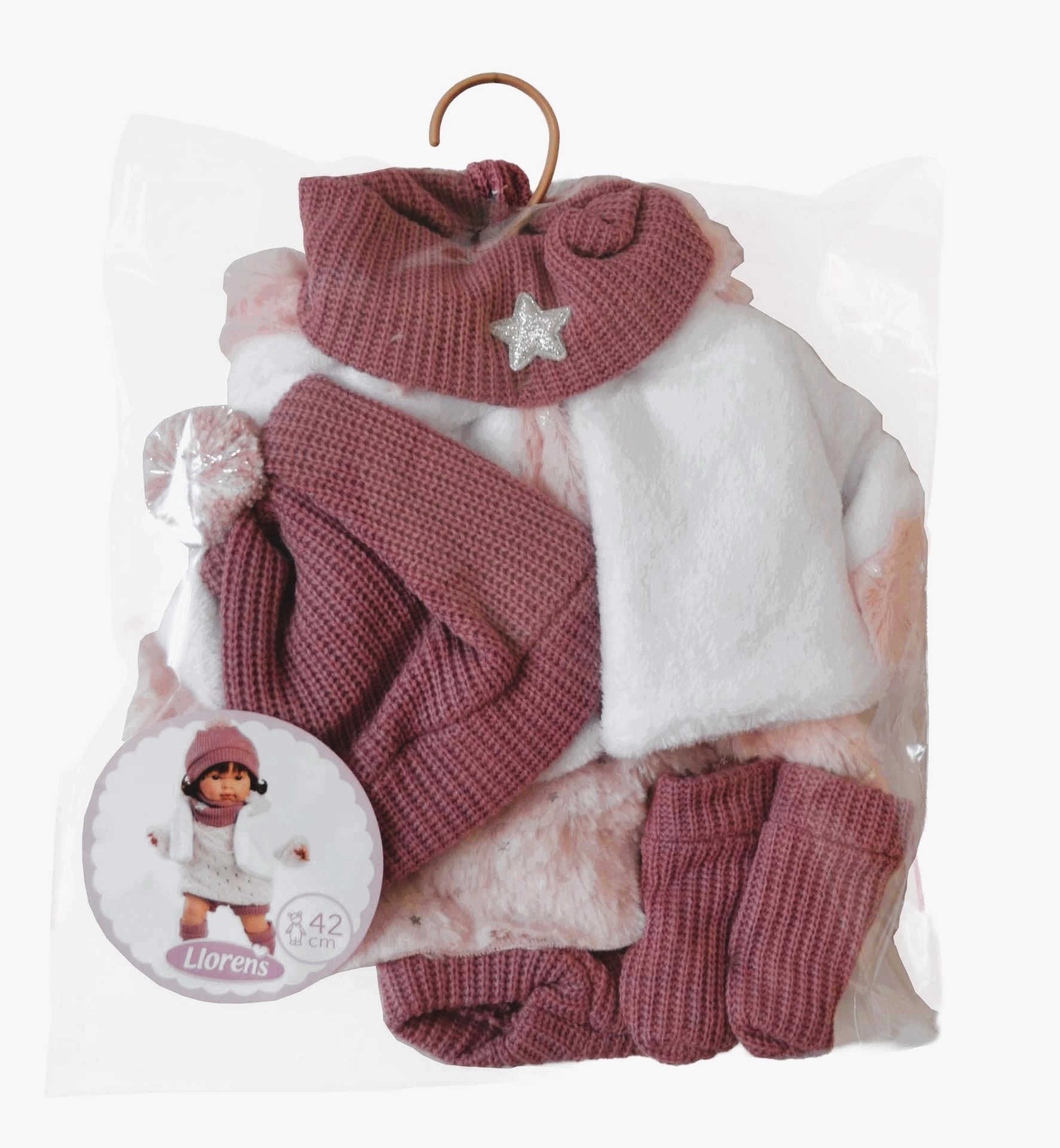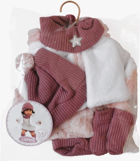 - Kompletny 6‑elementowy zestaw – perfekcyjnie skomponowany zimowy strój dla lalki 42 cm.
