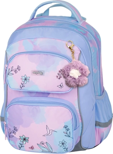 Wzornictwo w pastelowych tonach z motywem koliberków i kwiatów spodoba się dzieciom i rodzicom. Trwałe materiały, wzmocnione, nieprzemakalne dno oraz liczne elementy odblaskowe zapewniają długą żywotność i lepszą widoczność. W zestawie znajduje się jednokomorowy piórnik z elastycznymi uchwytami na przybory do pisania i wewnętrzną kieszonką z siatki, a także praktyczny worek na obuwie zmienne lub sprzęt sportowy w tym samym motywie.