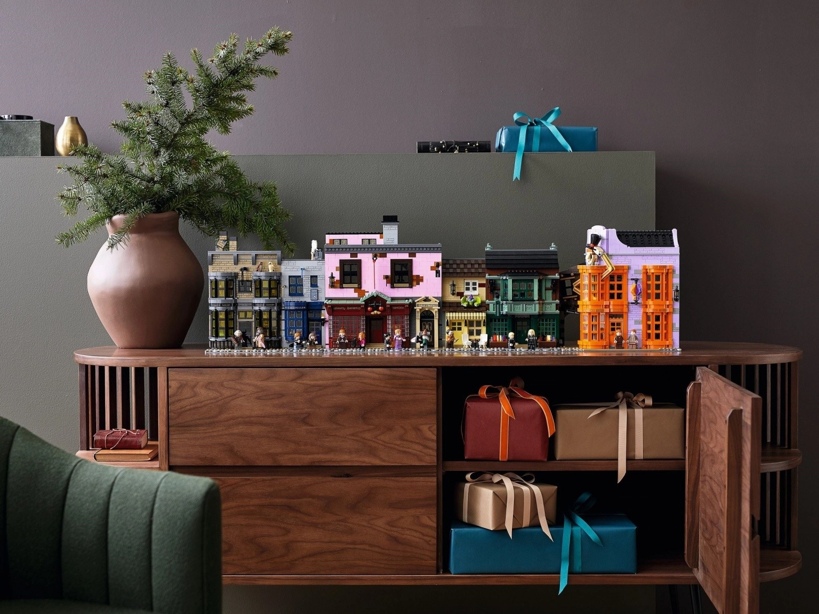Ponad metr szeroka Ulica Pokątna z barwnymi fasadami i realistycznymi wnętrzami oferuje najwyższej klasy model do ekspozycji i zabawy.