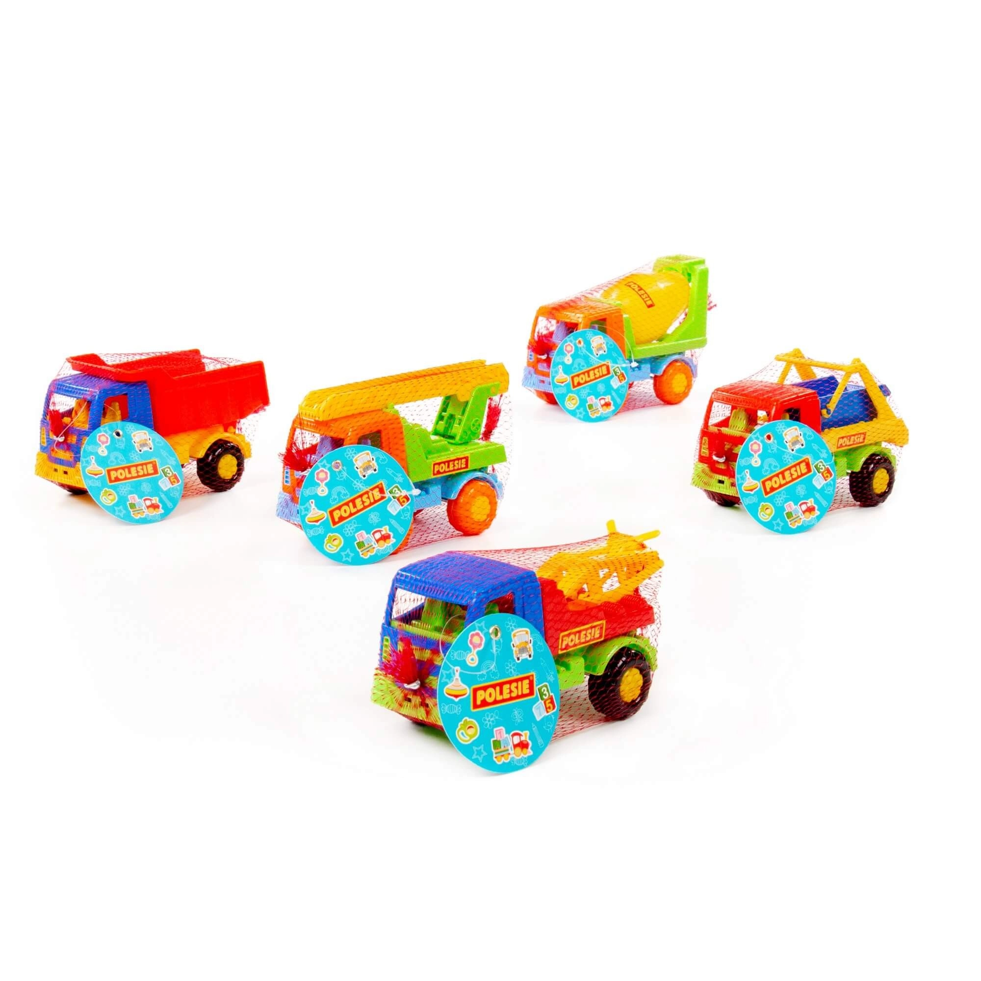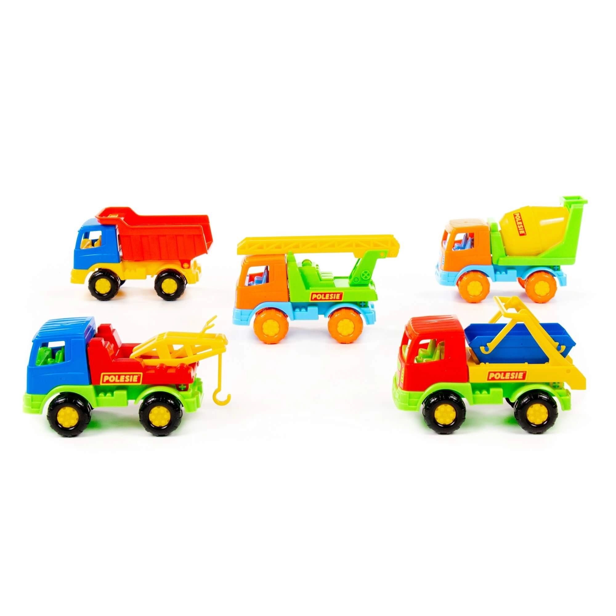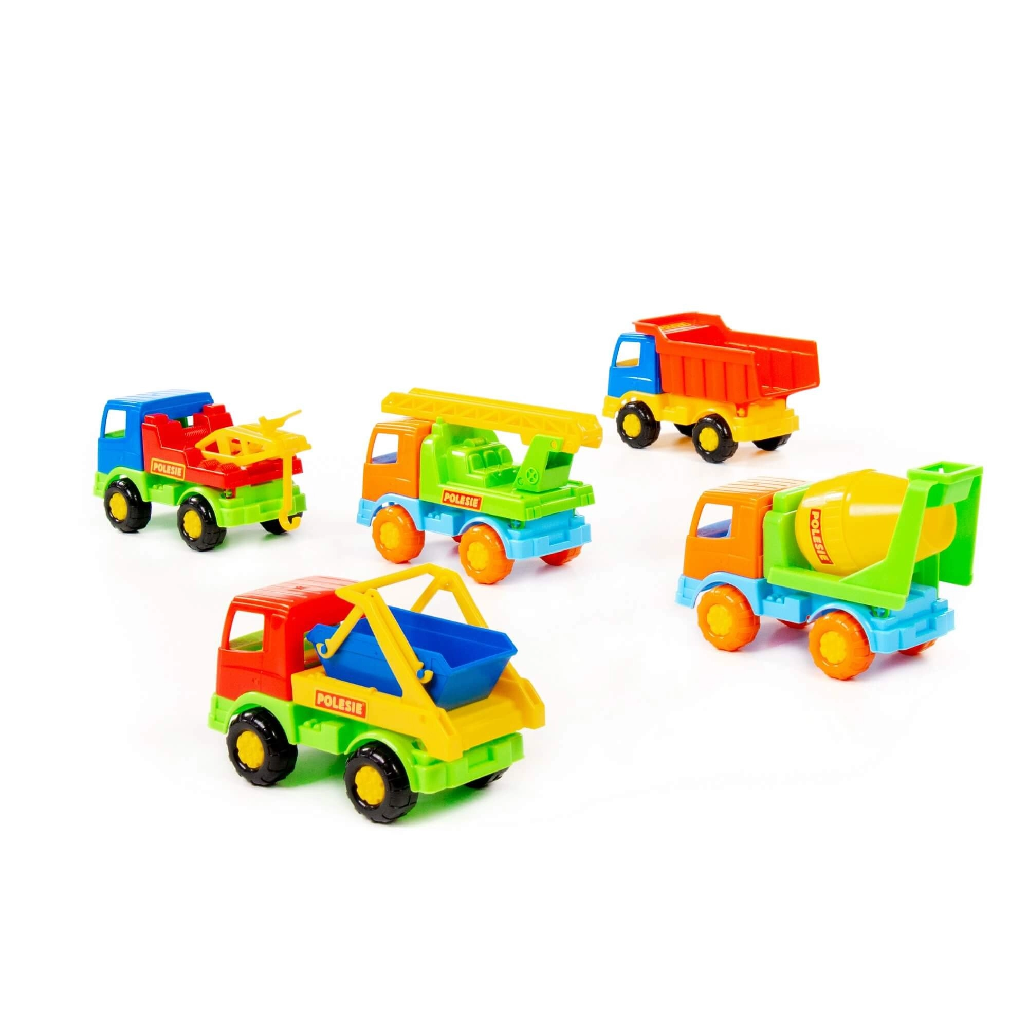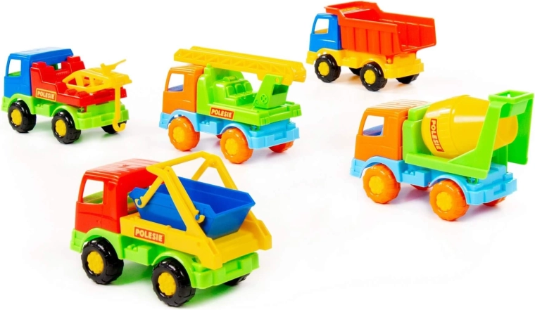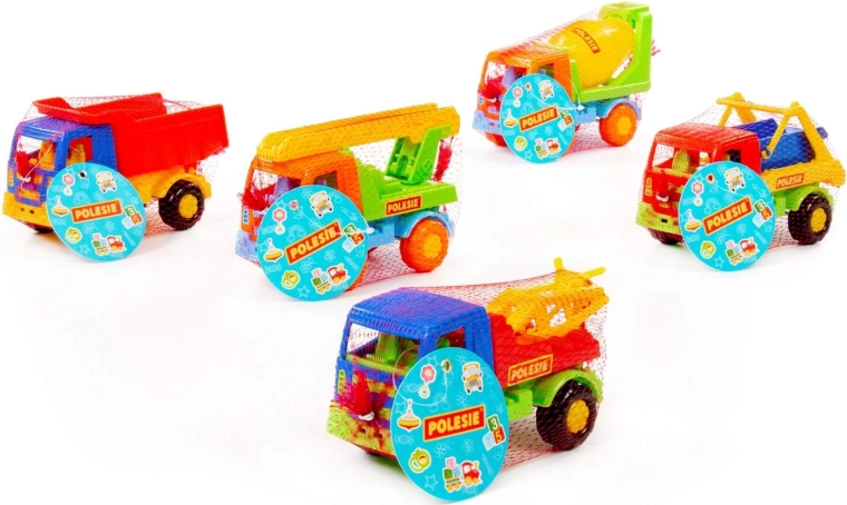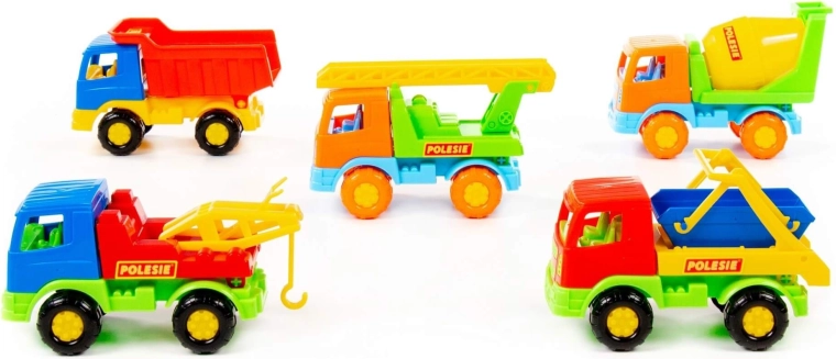 - Różne typy pojazdów: wywrotka, betoniarka, auto z drabiną, pojazd z hakiem, kontener budowlany (dostarczane zgodnie z aktualnym mixem)