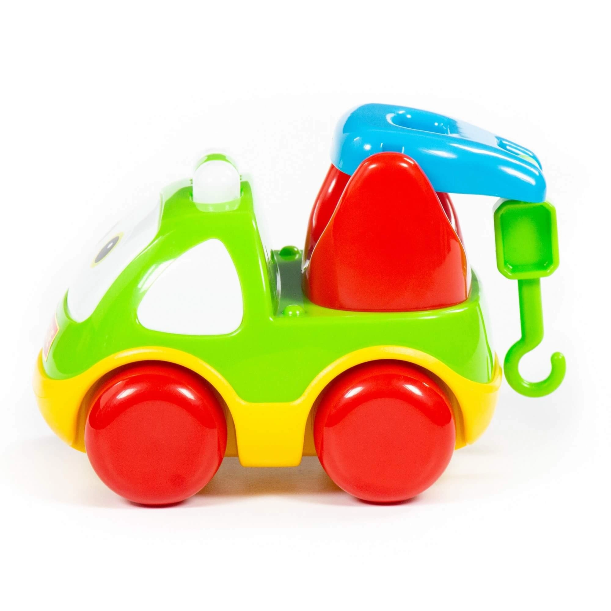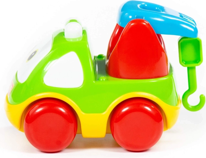 Wytrzymały plastik jest gotowy na intensywną zabawę w domu i na zewnątrz, a intuicyjny kształt ułatwia prawidłowy chwyt i rozwija koordynację ręka‑oko. Autko wspiera samodzielną zabawę, kreatywne historie i pierwsze wyścigi.