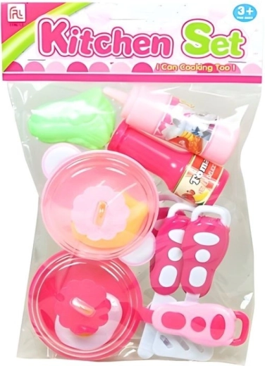 Zawartość opakowania zazwyczaj obejmuje kubeczki z pokrywką, przybory kuchenne (np. łyżki, chochle) oraz zabawkowe produkty spożywcze, które pozwalają tworzyć realistyczne scenki z kuchni. Dzięki bezpiecznemu wykonaniu zestaw nadaje się do codziennej zabawy.