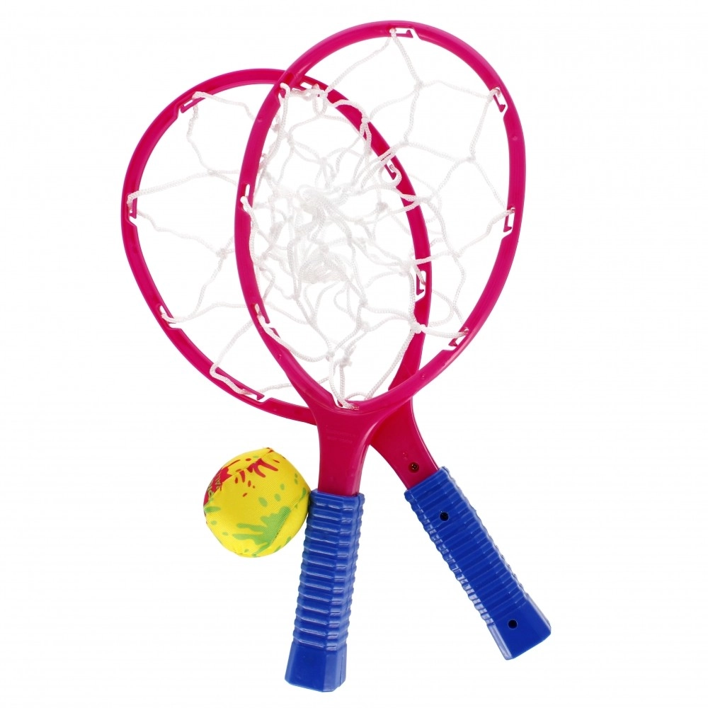 Plastikowe rakiety z siatką i teksturowanym uchwytem ułatwiają dzieciom manipulację i poprawiają celność podczas gry.