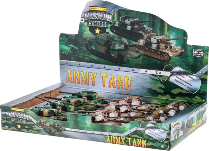 Odkryj zabawę z realistycznym metalowym czołgiem Mission Control o długości 11 cm. Zabawka na napęd typu pull-back ucieszy małych miłośników techniki wojskowej, jest dostępna w 3 kolorach (zielony, brązowy, khaki) i idealnie nadaje się dla dzieci od 3 lat.