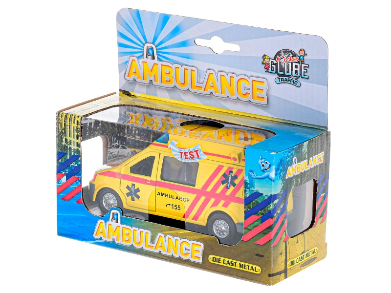 Ta starannie wykonana metalowa karetka Kids Globe Traffic dostarcza dzieciom autentycznych wrażeń z zabawy w ratowników. Po naciśnięciu przycisku na dachu aktywują się migające światła i syrena, dzięki czemu zabawa ożywa jak przy prawdziwym wyjeździe.