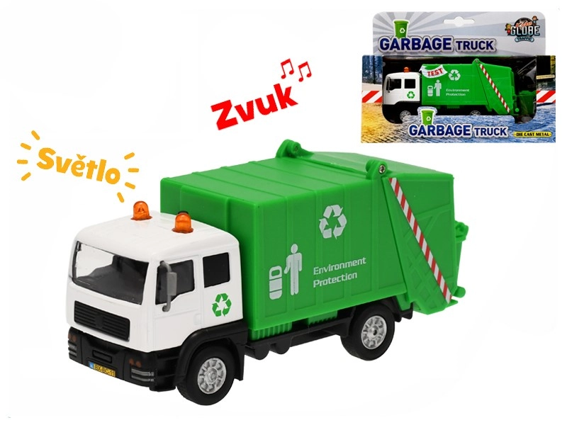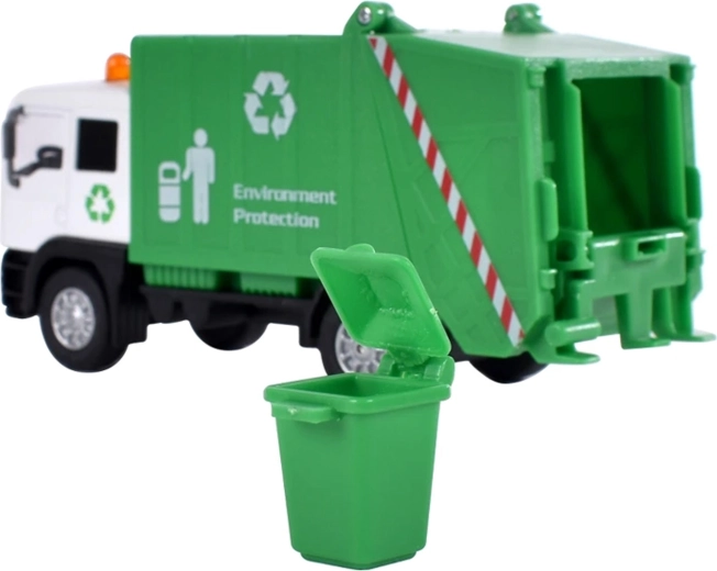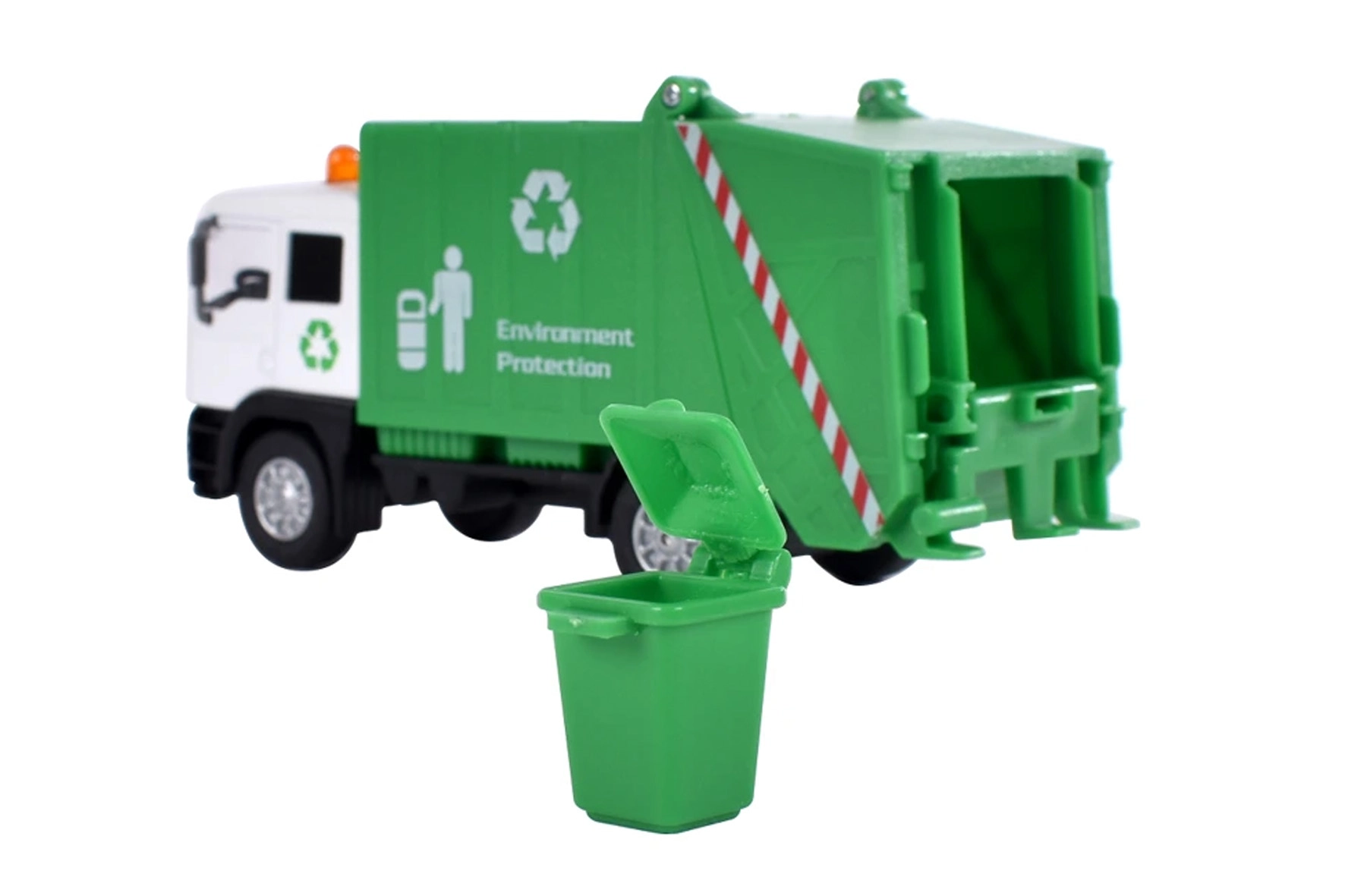 - Realistyczne wykonanie: światła i dźwięki jak w prawdziwej śmieciarce.