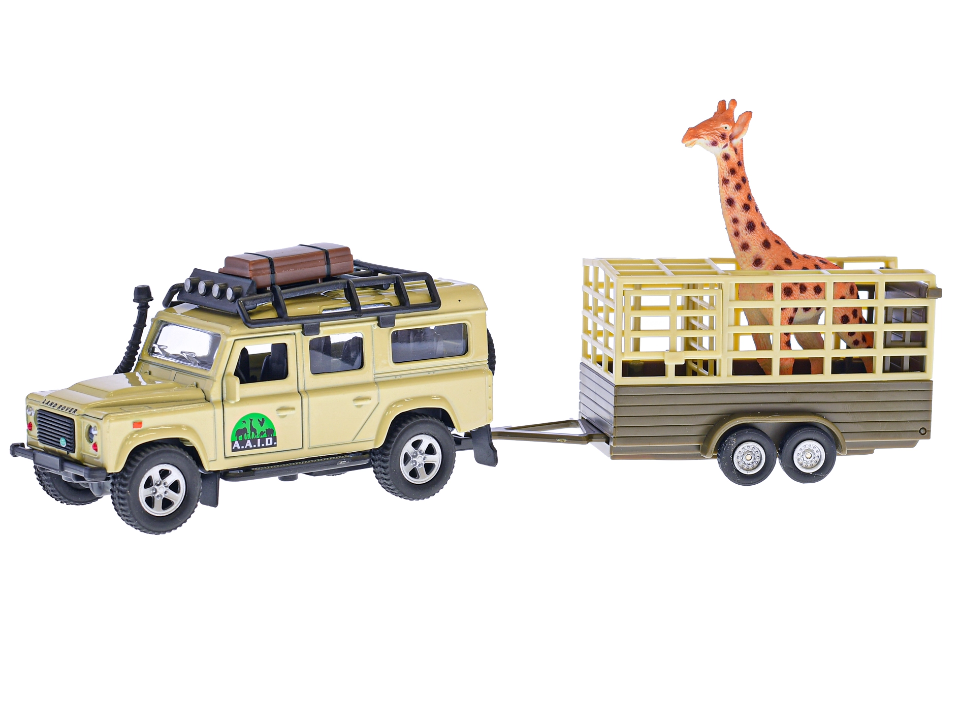 Ten realistyczny zestaw zachwyci małych miłośników zwierząt i aut. Metalowy model LAND ROVER DEFENDER z dopracowanymi detalami i funkcjonalnym napędem wstecznym łatwo jeździ po gładkiej powierzchni, przyczepę można w każdej chwili odłączyć i ponownie podłączyć. Figurka żyrafy może być przewożona w przyczepie, a dzieci tworzyć własne opowieści safari.