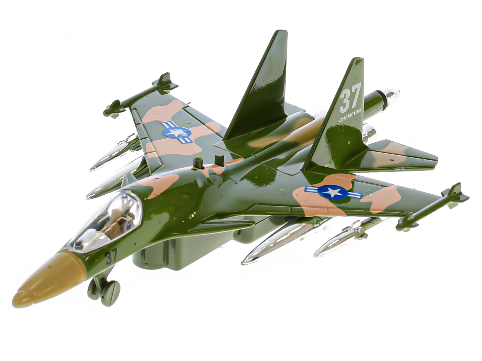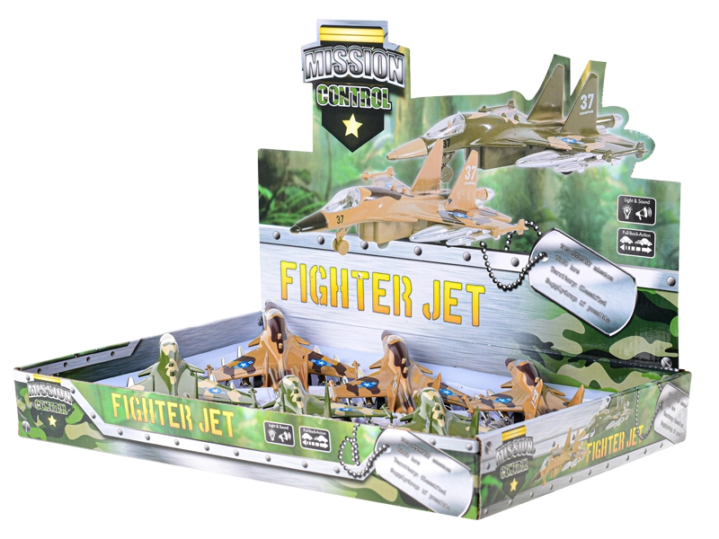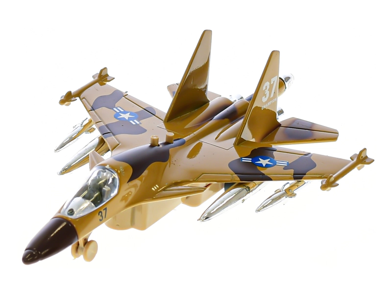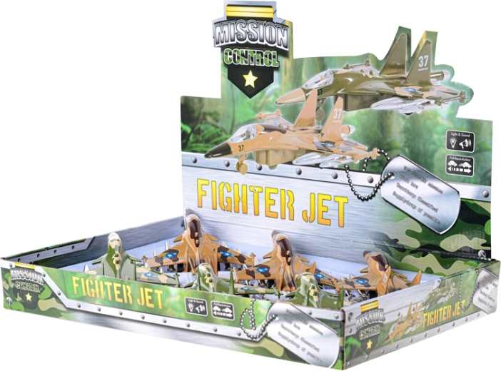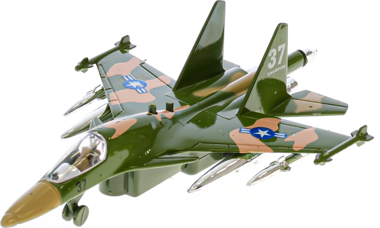 Ten szczegółowo odwzorowany wojskowy samolot jest idealny dla małych fanów lotnictwa. Wystarczy naciągnąć, puścić i dzięki napędowi pull-back ruszy jak prawdziwa maszyna. Po naciśnięciu przycisku samolot miga i odtwarza dźwięk uruchamiania, co potęguje wrażenia z zabawy.
