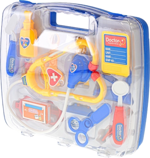 Ten dziecięcy lekarski kuferek oferuje wszystko, czego potrzeba małym lekarzom i lekarkom. Wszystkie elementy wykonane są z lekkiego i wytrzymałego plastiku i są przejrzyście ułożone w zamykanym kuferku, dzięki czemu nic się nie zgubi, a zabawa może zacząć się w dowolnym miejscu.