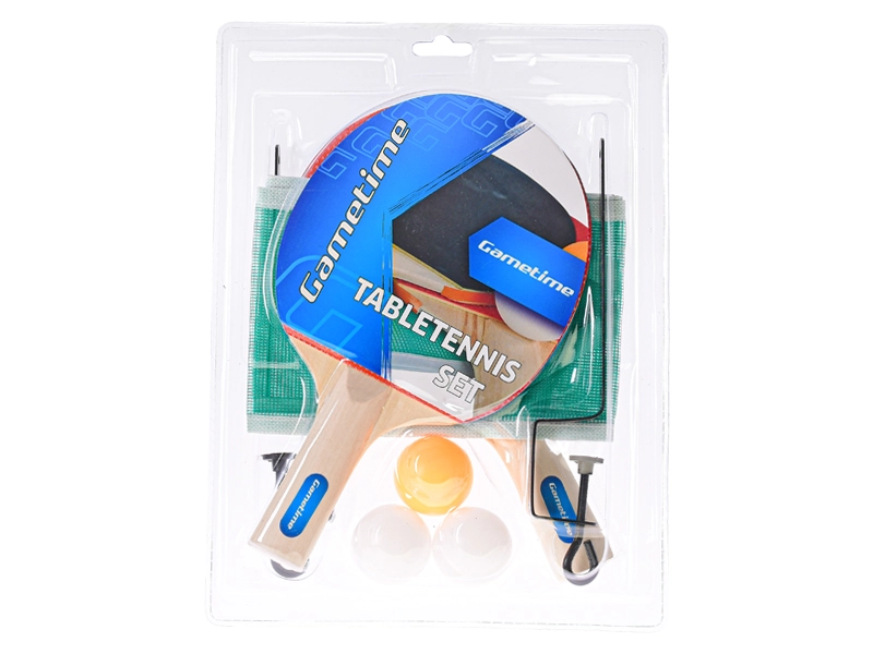 Ten uniwersalny zestaw do tenisa stołowego GAMETIME pozwoli Ci zacząć grę w kilka chwil. W opakowaniu znajdziesz wszystko, czego potrzebujesz: dwie wyważone drewniane rakietki z gumową okładziną dla pewnego uderzenia, trzy wytrzymałe piłeczki oraz solidną siatkę z metalowymi klipsami do stabilnego zamocowania na większości stołów.