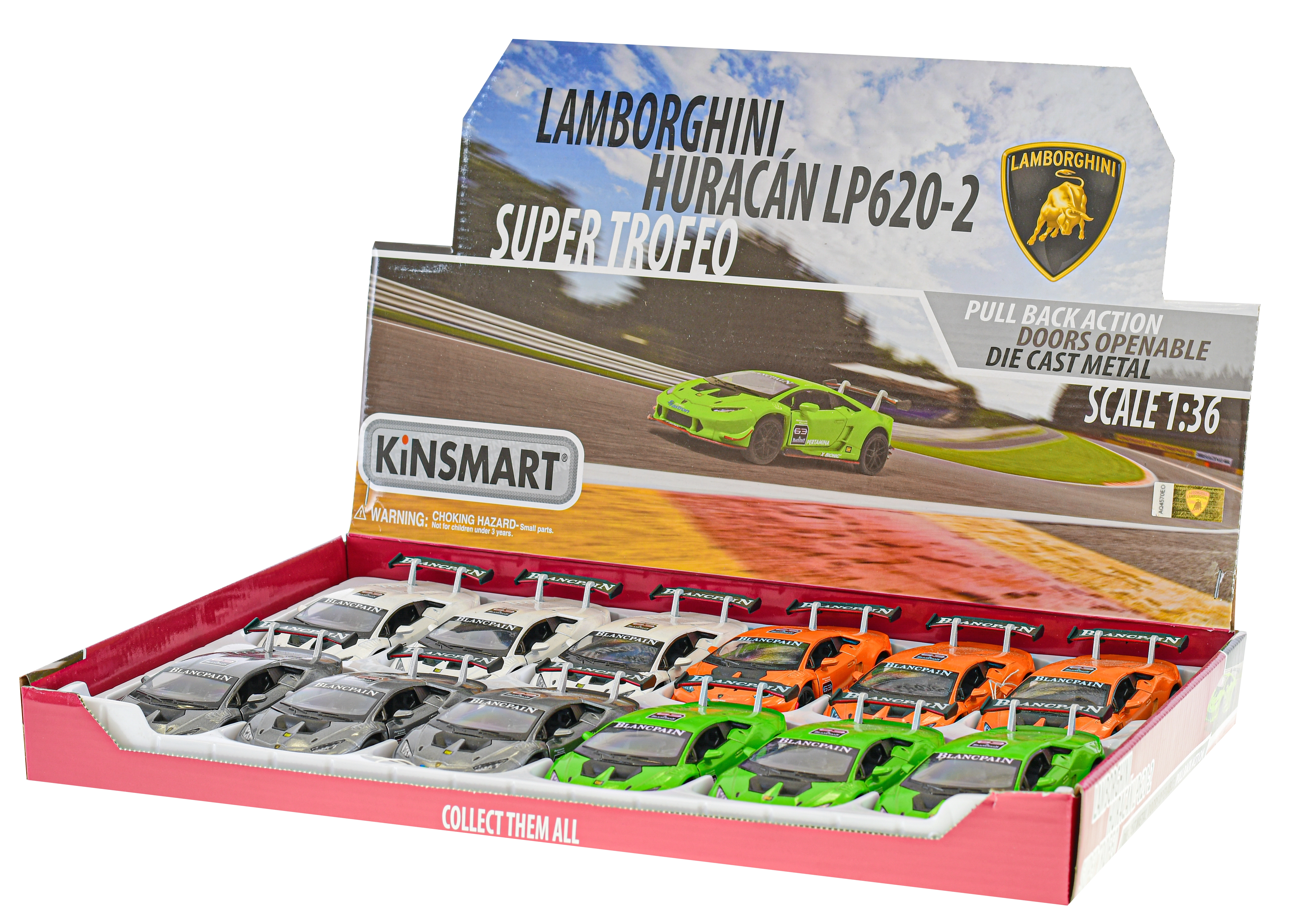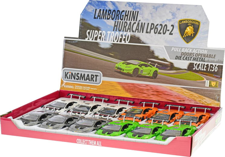Ikoniczny supersamochód Lamborghini Huracán LP620-2 trafia do Ciebie jako wysokiej jakości metalowy model, który wiernie odwzorowuje prawdziwy pojazd. Dzięki solidnemu wykonaniu i napędowi typu pull-back czeka Cię mnóstwo frajdy – naciągnij, puść i patrz, jak rusza do przodu. Realistyczne proporcje w skali 1:36 czynią go świetnym uzupełnieniem kolekcji i atrakcyjną zabawką.