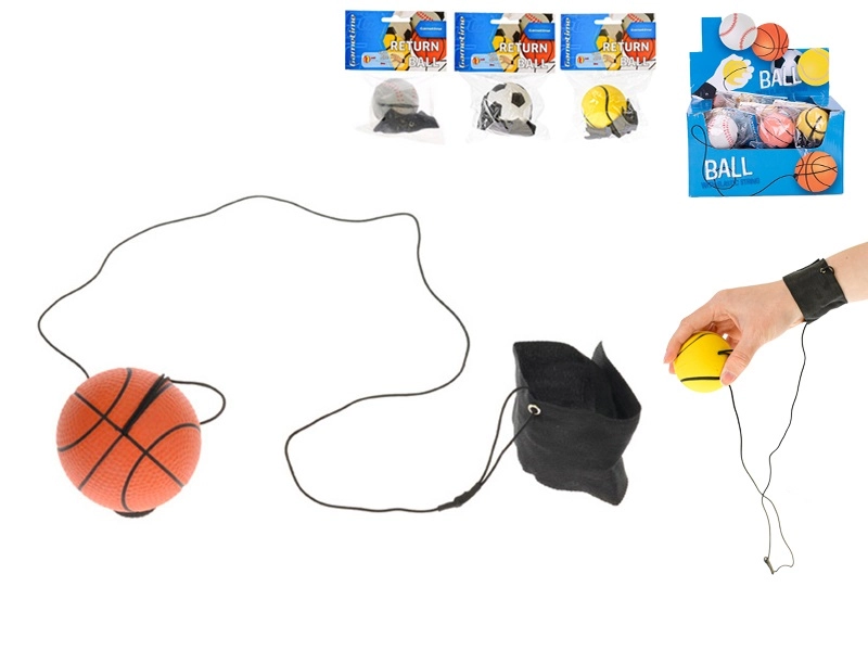 Zabawka dla dzieci i dorosłych: powracająca piłeczka GAMETIME o średnicy 60 mm jest przymocowana do elastycznej linki z paskiem na nadgarstek, dzięki czemu po rzucie zawsze wraca. Świetna do treningu koordynacji, refleksu oraz bezpiecznej samodzielnej zabawy bez gubienia piłeczki. Dostępna w wersjach tenis, piłka nożna, koszykówka i baseball. Odpowiednia od 6 lat.