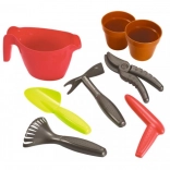 - Wózek na kółkach, doniczki, konewka, dziecięce narzędzia ogrodowe
