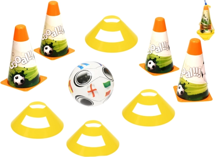 Praktyczne połączenie 4 pachołków (18 cm), znaczników i lekkiej piłki (12 cm) umożliwia tworzenie prostych torów treningowych, stref przeszkód oraz mini bramek. Dzięki trwałemu i lekkiego plastiku zestaw jest bezpieczny dla dzieci i łatwy w przenoszeniu oraz sprzątaniu.