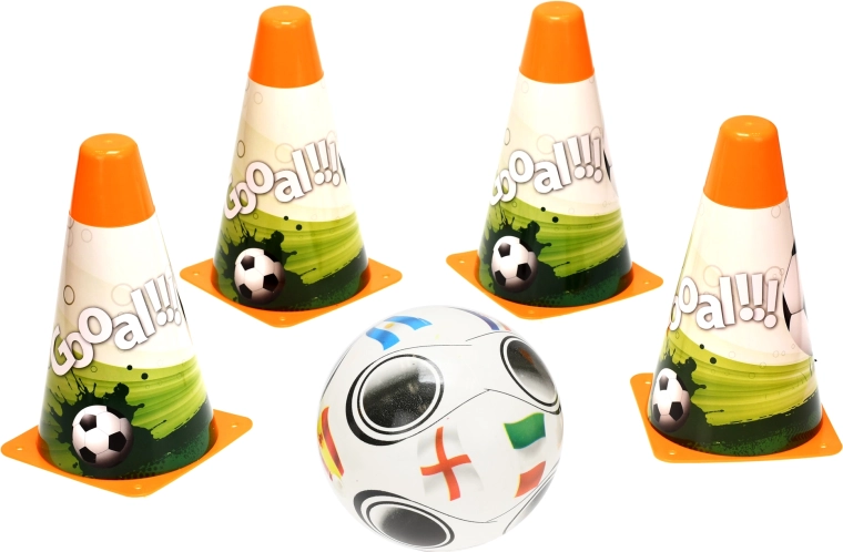 Kompletny piłkarski zestaw dla najmłodszych sportowców zawiera 4 pachołki treningowe (18 cm) oraz lekką piłkę o średnicy 12 cm. Idealny do rozwoju motoryki, koordynacji ruchowej i pierwszych umiejętności piłkarskich. Dzięki kompaktowym wymiarom nadaje się do zabawy na zewnątrz i w pomieszczeniach, a dzięki praktycznej siatce łatwo go przenosić i przechowywać.