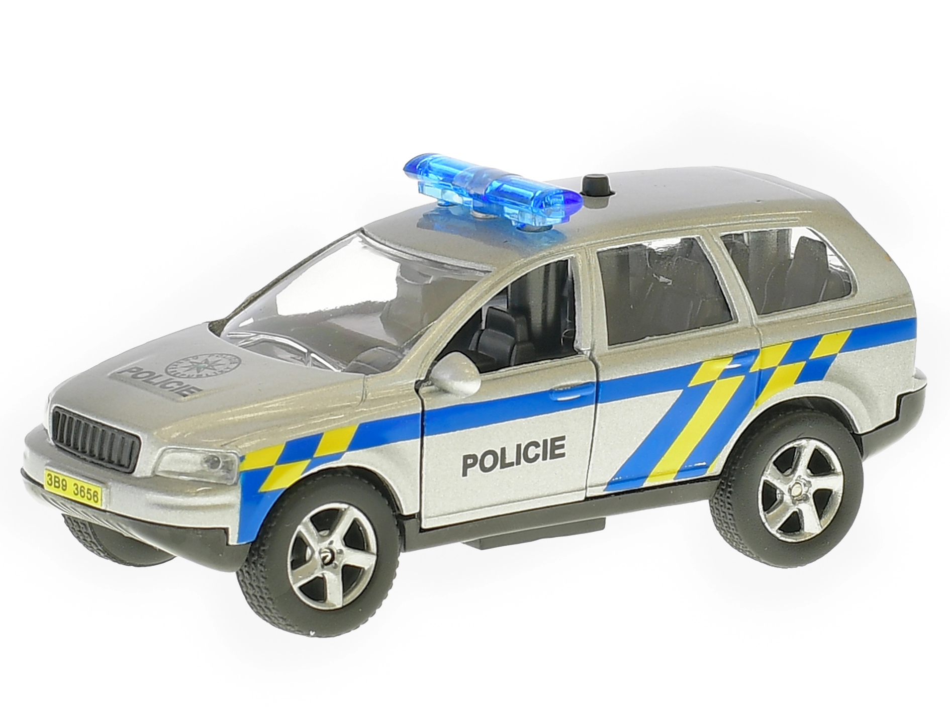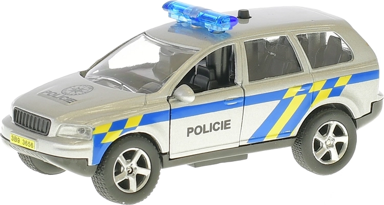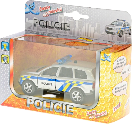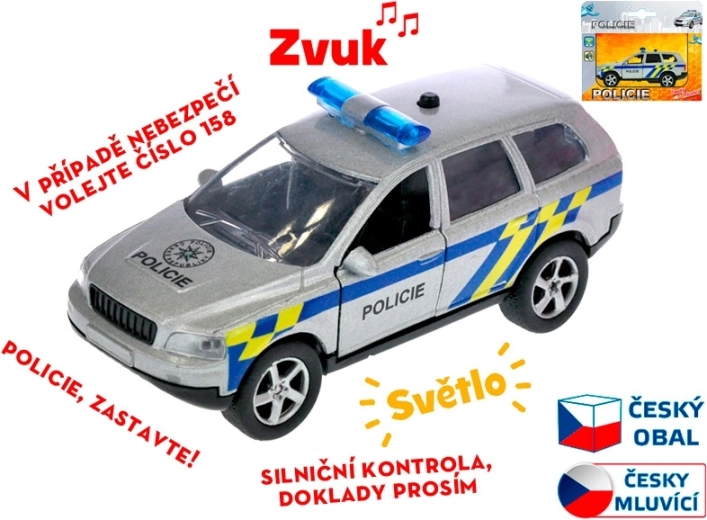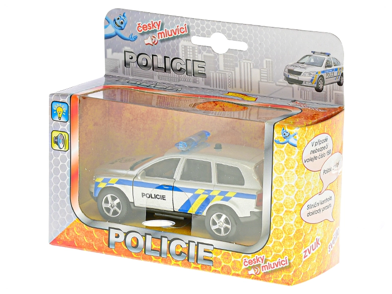 Realistyczny metalowy policyjny samochód o długości 11 cm z systemem napędu wstecznego (pull back) ruszy na pomoc po jednym naciągnięciu. Model dodatkowo mówi po czesku i używa świateł ostrzegawczych, dzięki czemu zabawa jest jeszcze bardziej emocjonująca. Na karoserii nie brakuje też ważnego numeru alarmowego 158, który dzieci łatwo zapamiętają.