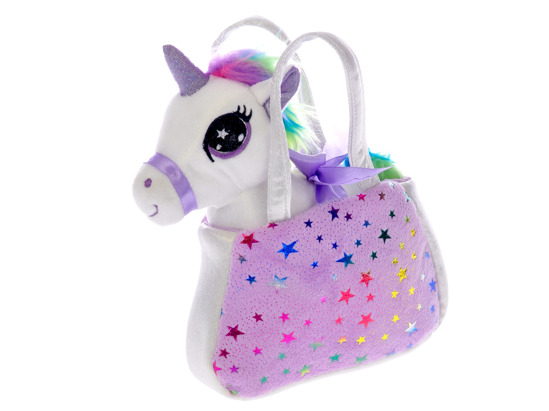 Podaruj dzieciom odrobinę magii z pluszowym jednorożcem, który dzięki miękkiej tkaninie jest nieodparcie delikatny w dotyku. Tęczowa grzywa i ogon nadają zabawce baśniowy wygląd, a kompaktowa torebka pozwala mieć ukochanego przyjaciela zawsze pod ręką – w domu, w podróży i w odwiedzinach.