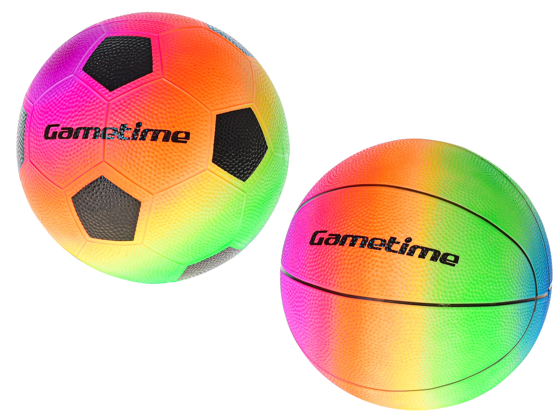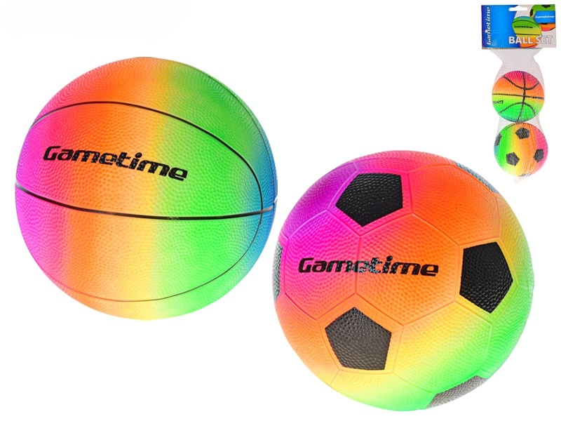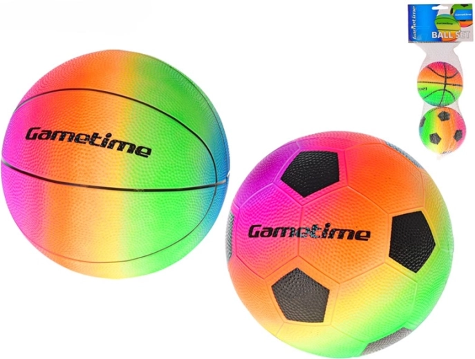 Otrzymujesz piłeczkę piłkarską i koszykarską w jednolitym, tęczowym stylu – idealne do urozmaiconej i wciągającej zabawy gdziekolwiek.