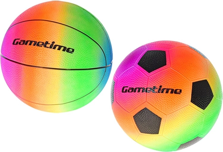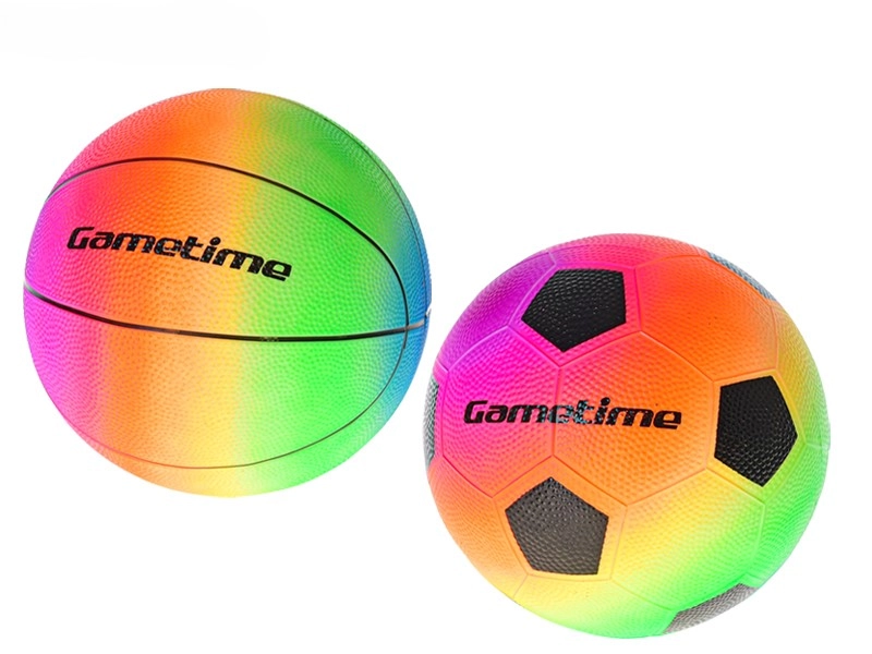 Wybierz między piłką do koszykówki a piłką nożną w tęczowym wydaniu – idealne do rekreacyjnej gry na zewnątrz i nad wodą.