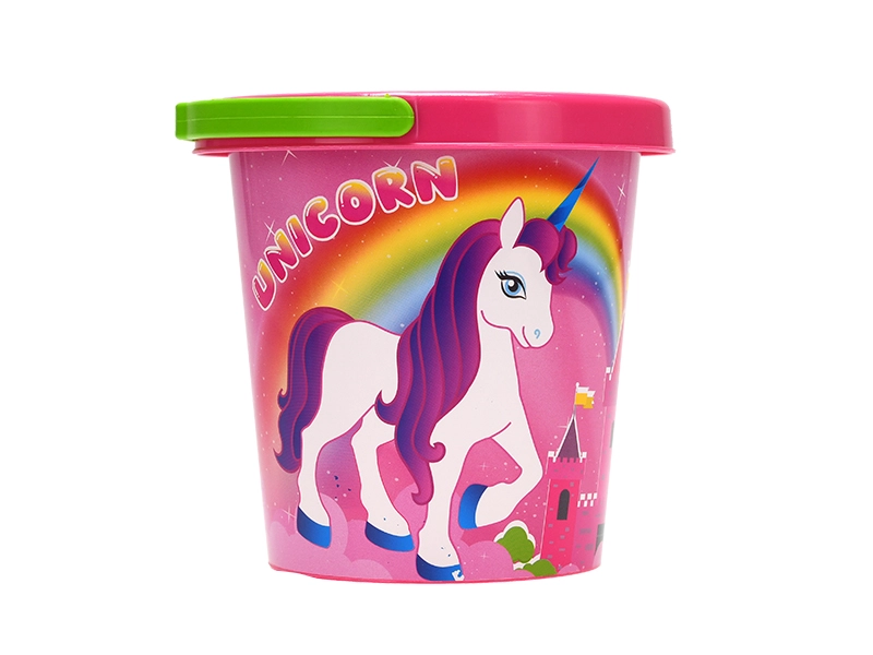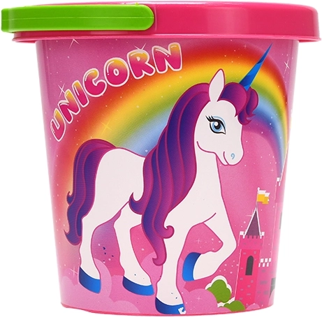 To kolorowe wiaderko z magicznym motywem jednorożca stanie się ulubionym pomocnikiem podczas zabaw w piaskownicy, w ogrodzie i nad wodą. Dzięki rozmiarowi 14 cm dzieci łatwo je chwytają i przenoszą, czy to zbierając muszelki, mieszając błotne babeczki, czy budując zamek z piasku.