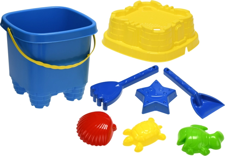Wszystkie elementy wykonane są z wysokiej jakości, lekkiego i trwałego plastiku, który znosi codzienne użytkowanie. Praktyczne opakowanie w siatce umożliwia szybkie wysychanie piasku i łatwe przenoszenie gdziekolwiek.