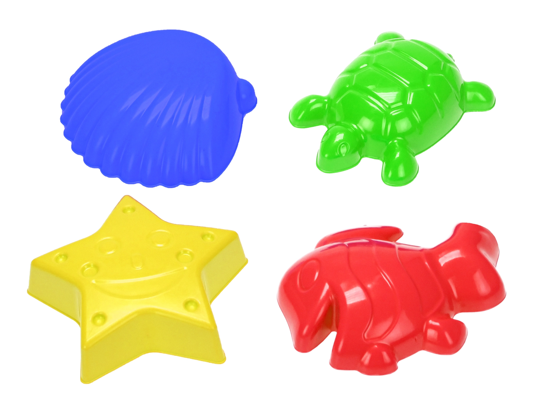 Ten kolorowy zestaw foremek do piasku dostarcza dzieciom nieskończonej porcji zabawy nad morzem i w piaskownicy. Dzięki ulubionym kształtom – muszla, rozgwiazda, rybka i żółwik – dzieci łatwo tworzą urocze piaskowe odciski i rozwijają wyobraźnię. Foremki zaprojektowano z naciskiem na bezpieczeństwo, mają gładkie, zaokrąglone krawędzie i są lekkie dla małych dziecięcych rączek.