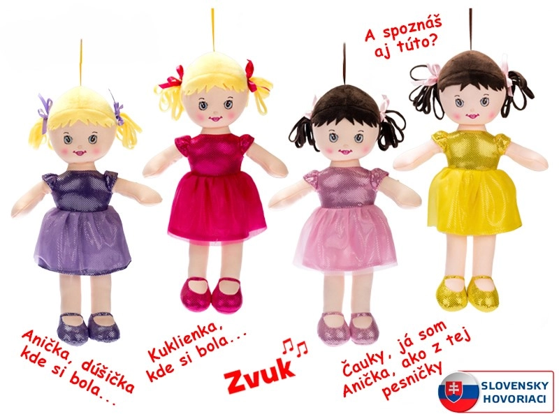 Lalka Aniczka to miękka i lekka materiałowa lalka, która dostarczy dzieciom mnóstwo radości. Dzięki słowackim kwestiom mówionym i śpiewanym w zabawny sposób wspiera rozwój językowy i komunikację. Kolorowa sukienka i buciki przyciągają wzrok od pierwszego spojrzenia i wspierają kreatywne odgrywanie ról.