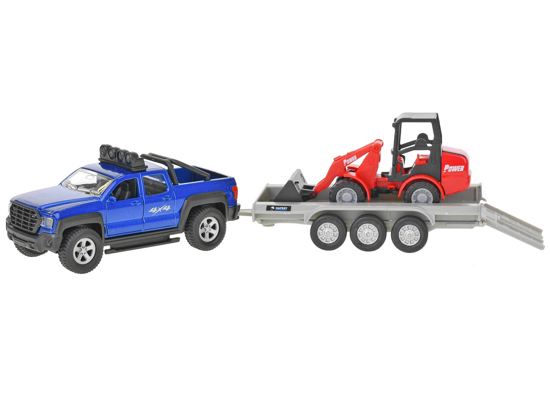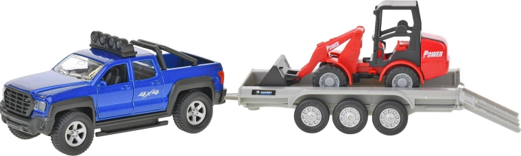 Model jest idealny dla małych miłośników techniki i maszyn budowlanych. Napęd typu pull-back umożliwia łatwe wprawienie pojazdu w ruch bez skomplikowanego sterowania, a przyczepę można szybko odpiąć i ponownie podłączyć. Wytrzymałe wykonanie świetnie sprawdza się w codziennej zabawie w domu i w podróży.